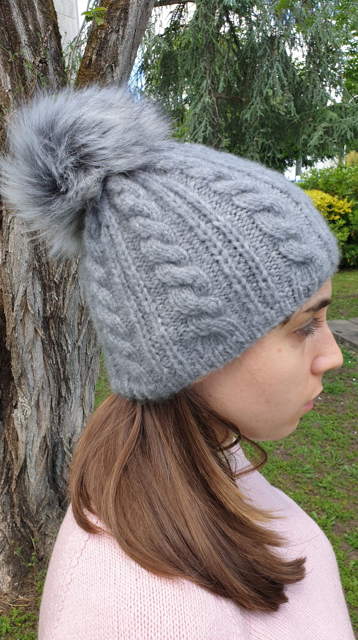 Le bonnet laine Cashmere Light de Lang Yarns avec pompon en fausse fourrure