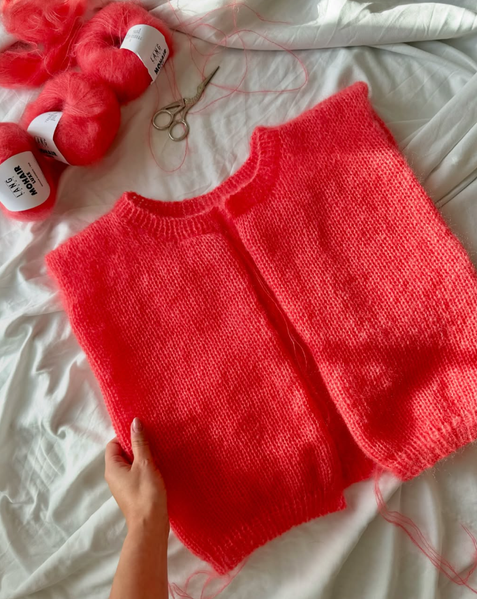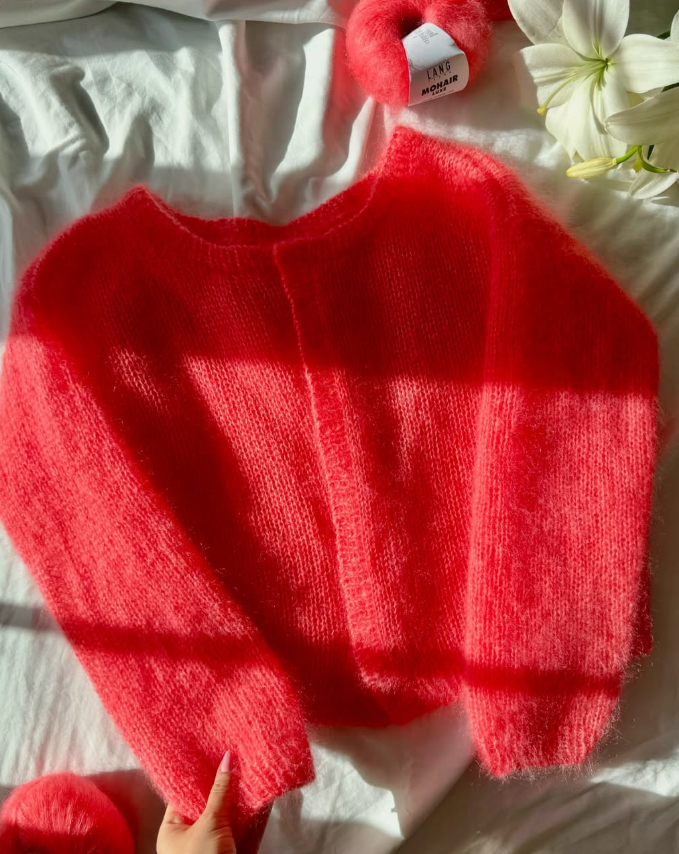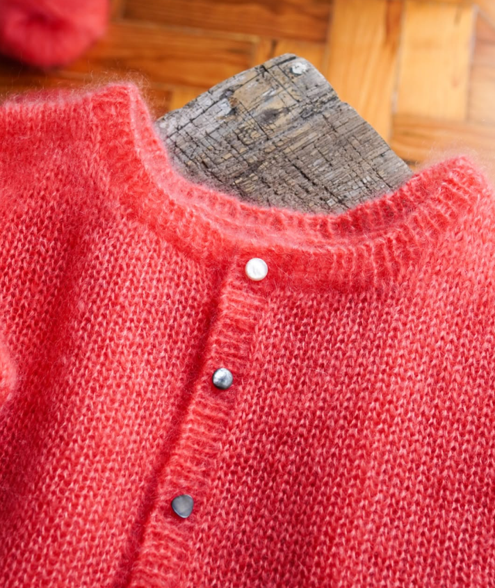 🌺 Le Cardigan et le pull Lapa de Judith Jelena est un compagnon luxueux et douillet pour toutes les saisons. Tricotés avec 🧶 deux fils de mohair et soie Mohair Luxe de Lang Yarns, ce gilet et ce pull séduisent par leur élégance 🌟 sobre et leur texture délicate, en faisant une véritable pièce de confort 😍. Dans un joli ton de corail 🪸 ou de mauve tendance cet hiver, qui donnent tout de suite bonne mine 😊, vous êtes libre de le tricoter dans une autre couleur de la gamme très large. 🎨 Un gilet ou pull simple, que vous pourrez embellir avec de jolis boutons pour la fermeture ou y apporter de la brillance avec pourquoi pas, un fil de Paillettes de la marque ? 🌠 On vous explique tout sur ce gilet et ce pull de la créatrice ici. 💯