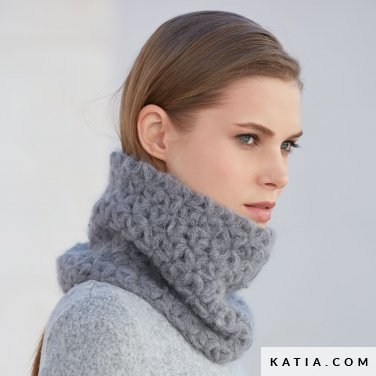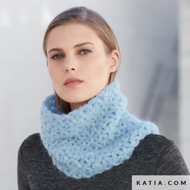 Voici un joli modèle de snood/col crocheté de la marque espagnol Katia. La laine utilisée ici est la Aire de Concept par Katia – 35% baby alpaga, 35% super kid mohair, 30% polyamide – (plus disponible chez le fabricant), que vous pouvez aisément remplacer par d’autres laines Katia ou bien des laines Lang Yarns, selon votre convenance, le choix du toucher et du coloris. Vous pouvez faire ce point avec une laine ou bien pour plus de légèreté avec un fil de mohair et soie par exemple.