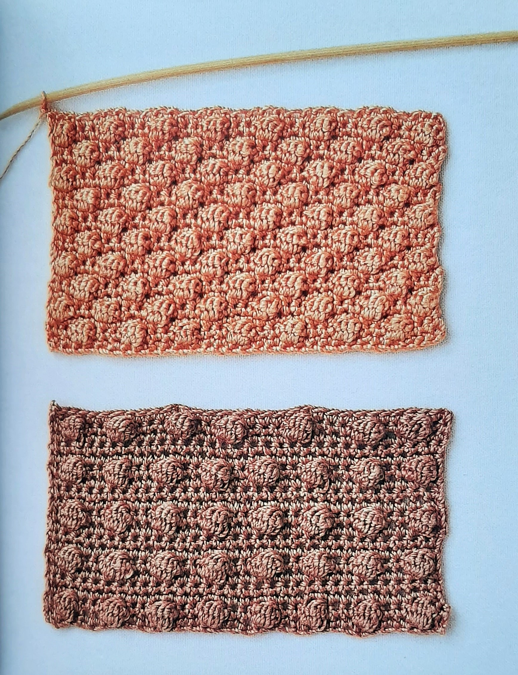Voici d’autres explications qui pourront vous aider dans la confection du point de noisettes au crochet. Soit des boules plus aplaties, soit avec des espaces plus grands entre les boules :