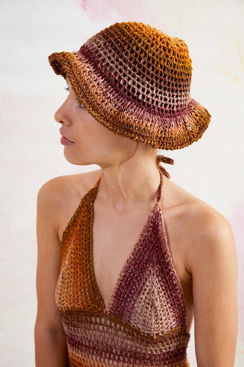 Nous vous proposons ci-dessous d’autres inspirations de chapeau à crocheter en coton. Pour obtenir les explications, nous vous invitons à vous procurer les catalogues de modèles correspondants des marques Wooladdicts et Lang Yarns.