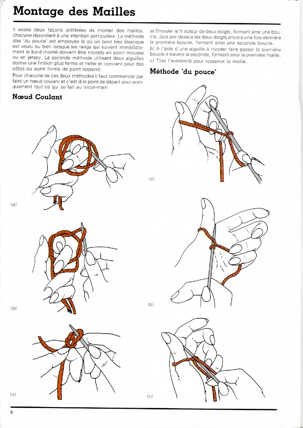 Monter des mailles à la Française, méthode du pouce