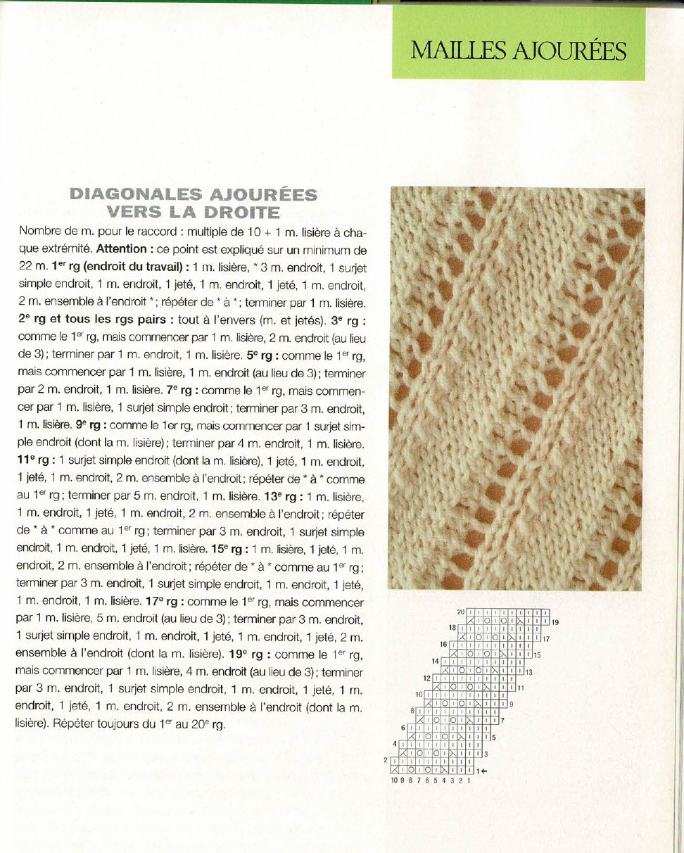 point de diagonales ajourées au tricot