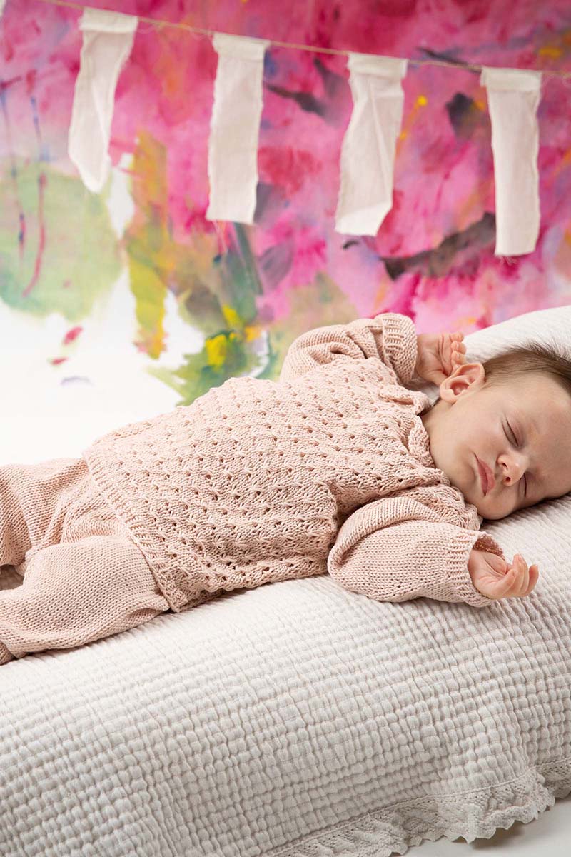 Un modèle layette tricoté avec ce point fleuri