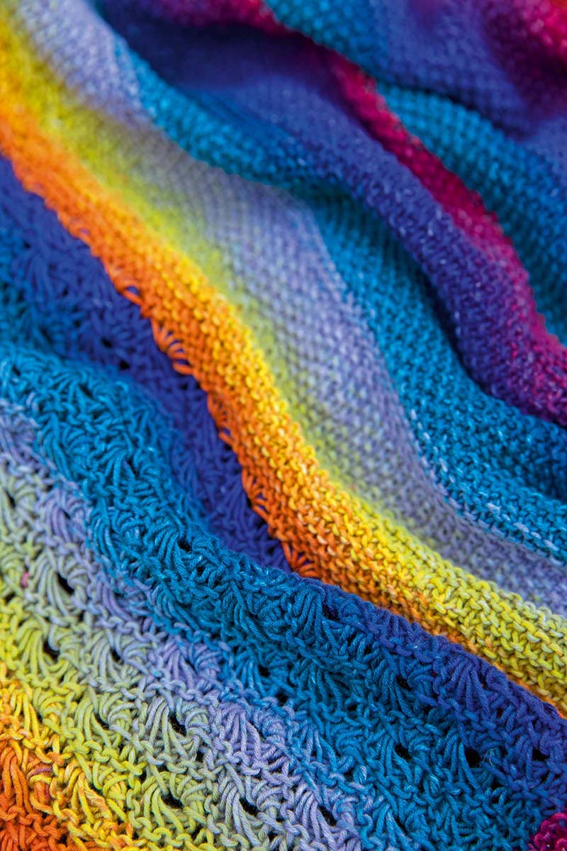 En voici un autre modèle réalisé en partie avec le point de pâquerettes : un plaid. C’est le n°8 du catalogue Lang Yarns Punto 56 layette, tricoté en coton Baby Cotton Color de Lang Yarns.