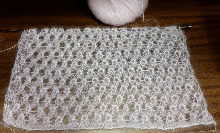 Je me suis moi-même prêter au jeu de confectionner le point avec un fil de mohair et soie pour confectionner une écharpe.