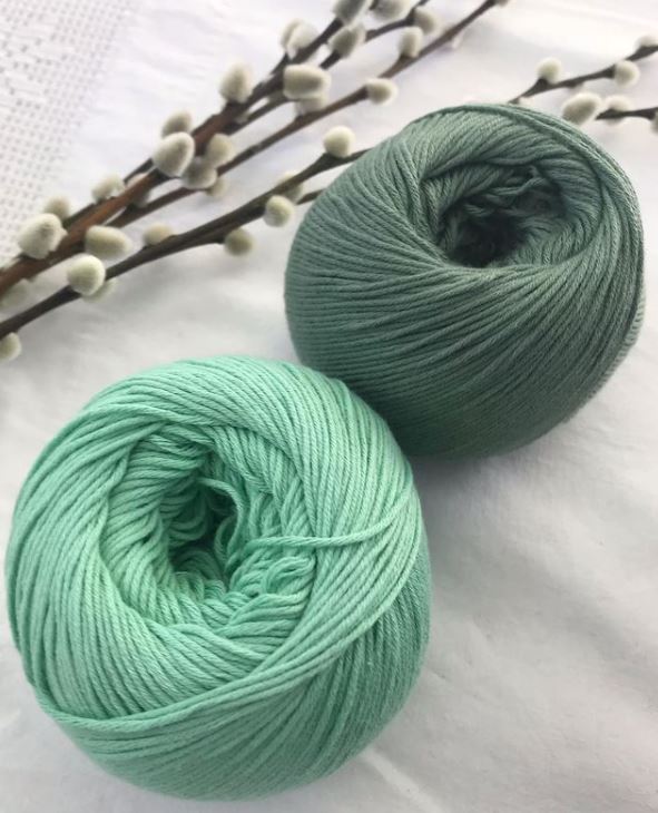 Pour une taille 3 mois, il vous faudra 2 pelotes de Baby Cotton (100% coton peigné issu de l’agriculture biologique) de Lang Yarns, coloris 112.0309.