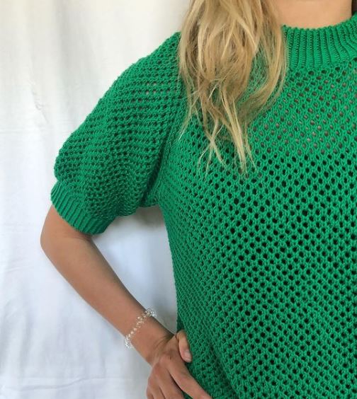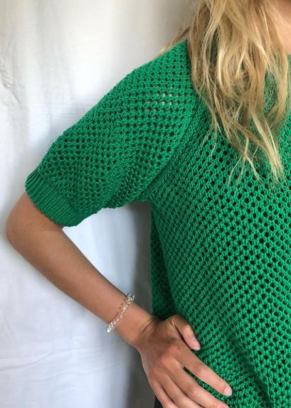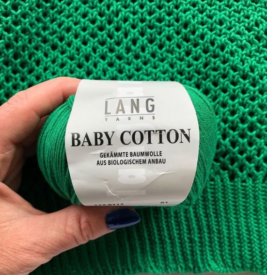 Voici un modèle de pull à manches courtes pour femme réalisé au point de nid d’abeilles. Il est tricoté en coton Baby Cotton (100% coton de culture biologique contrôlée) de Lang Yarns. Ce fil est disponible en 55 coloris au choix. Le coloris utilisé ici est le 112.0117.