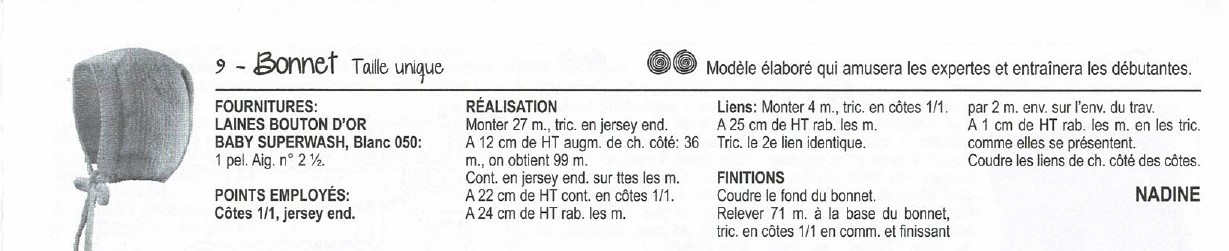 Béguin bébé tricot Bouton d'Or