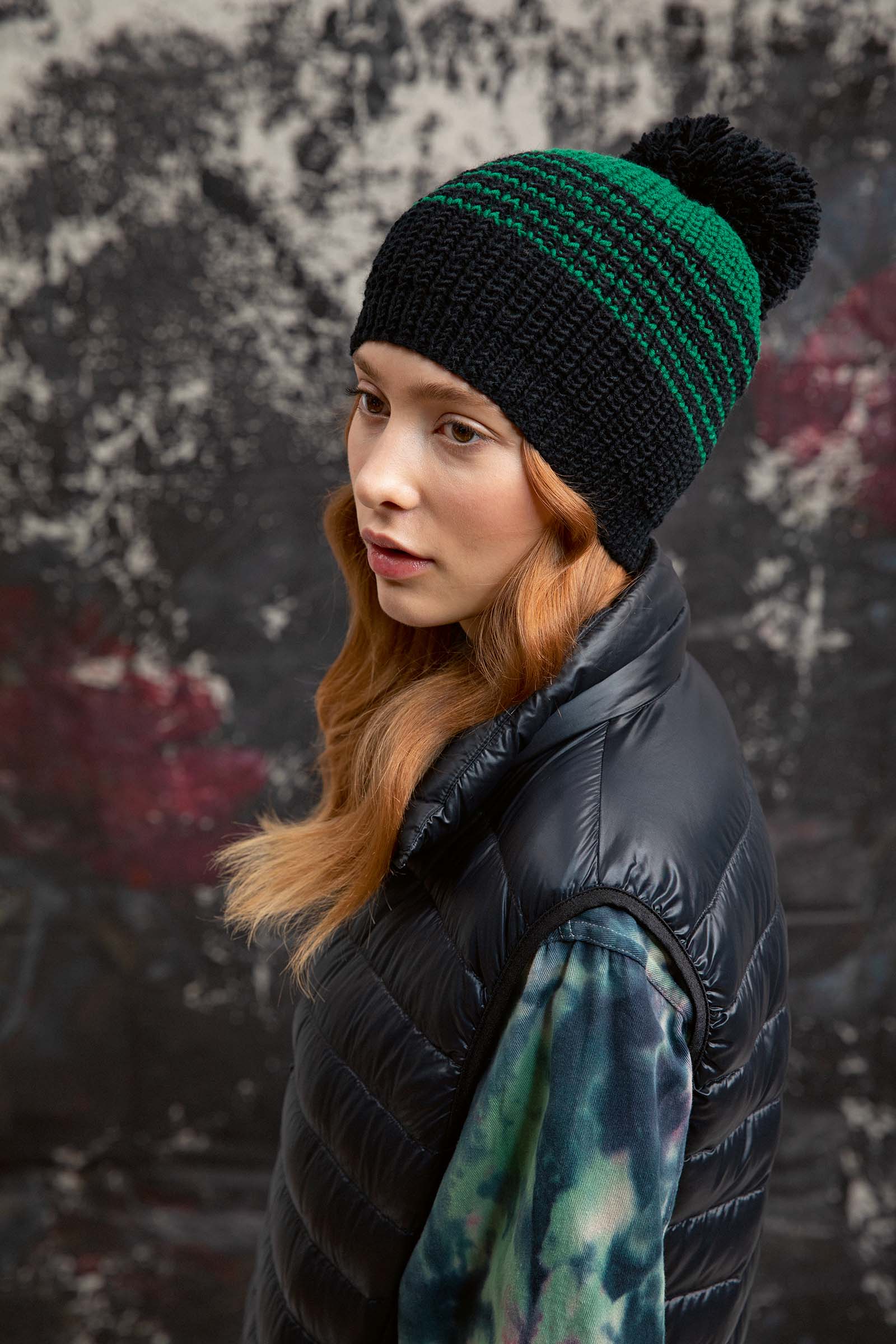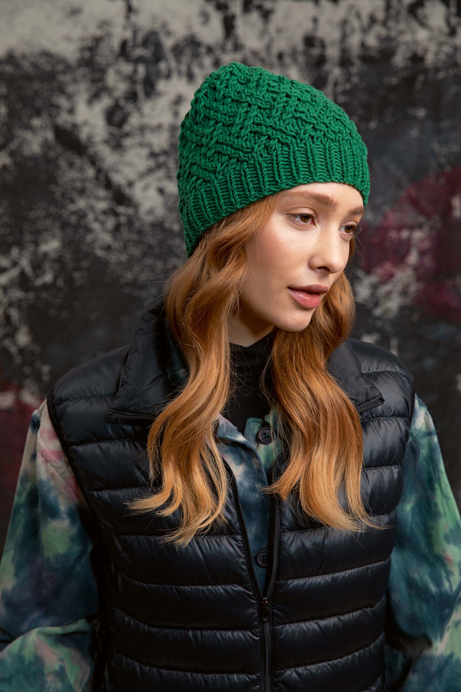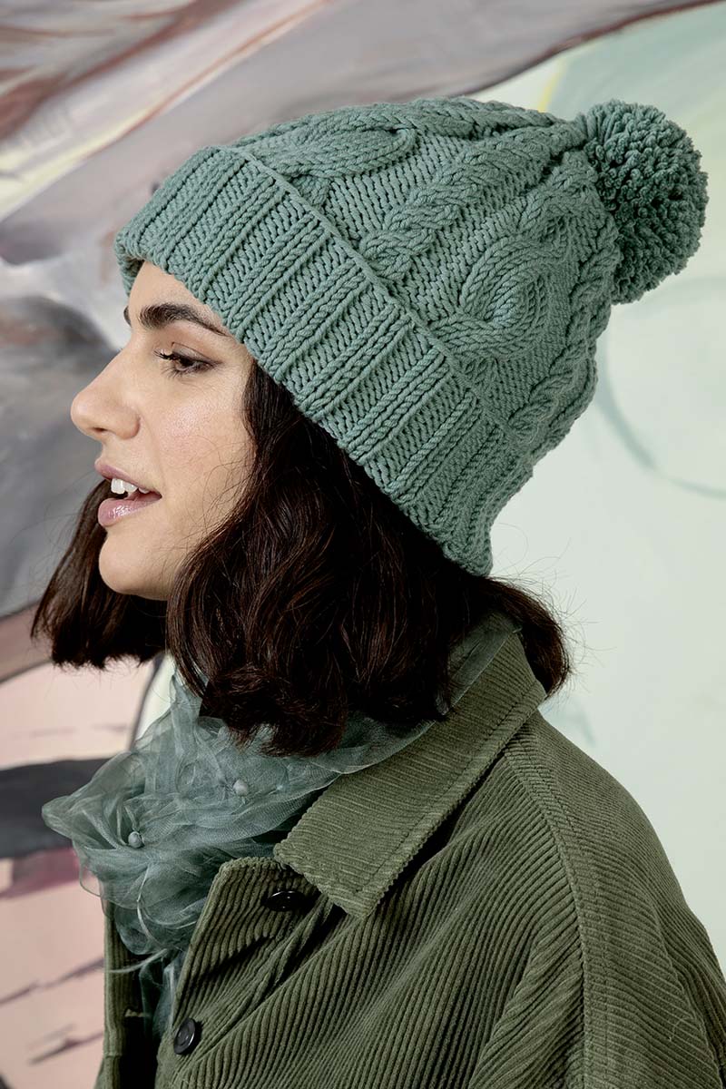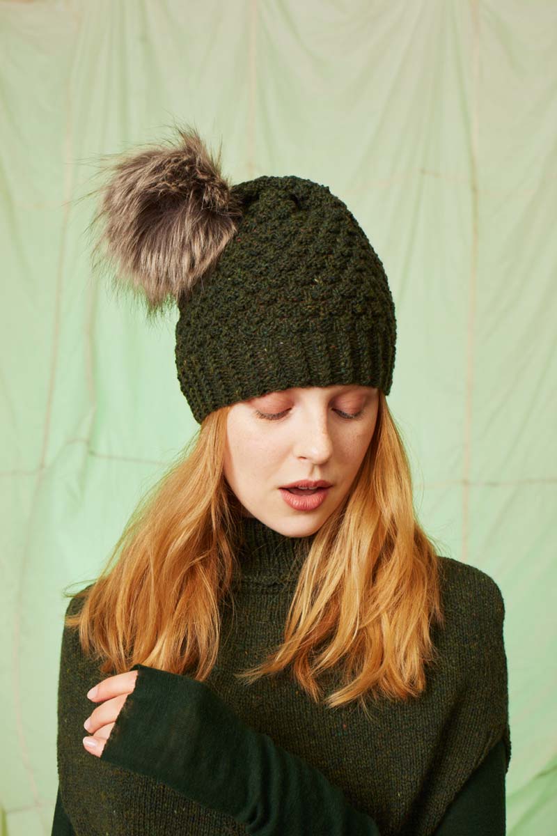 • Le bonnet droit se porte avec ou sans pompon (en laine ou bien en fausse fourrure végétale). Optez pour une laine assez grosse ou tordue et tricotez un peu serré ou faites un point fantaisie qui resserre le fil, comme des torsades, des côtes fantaisies, du point de blé, ou riz etc…
