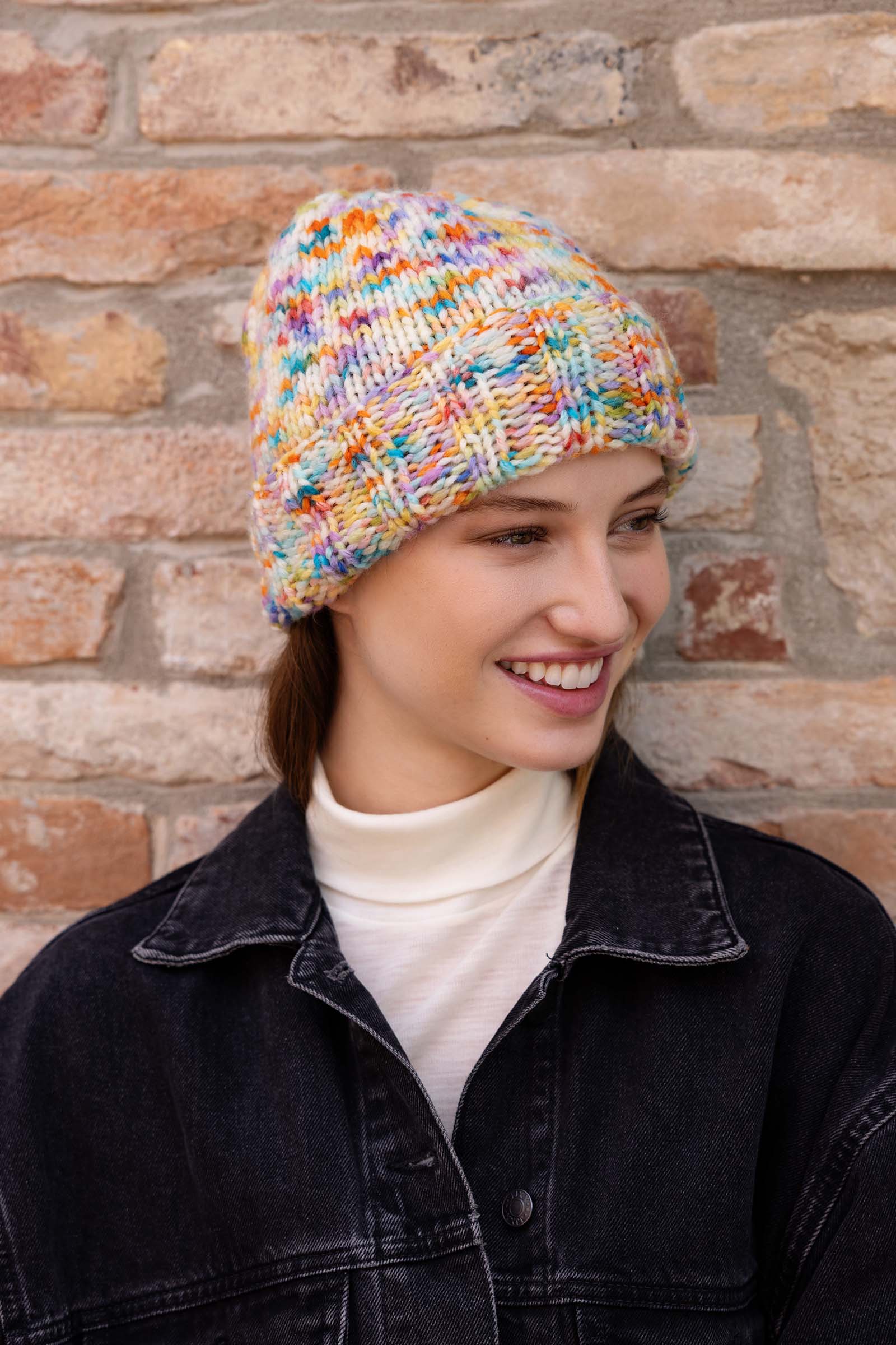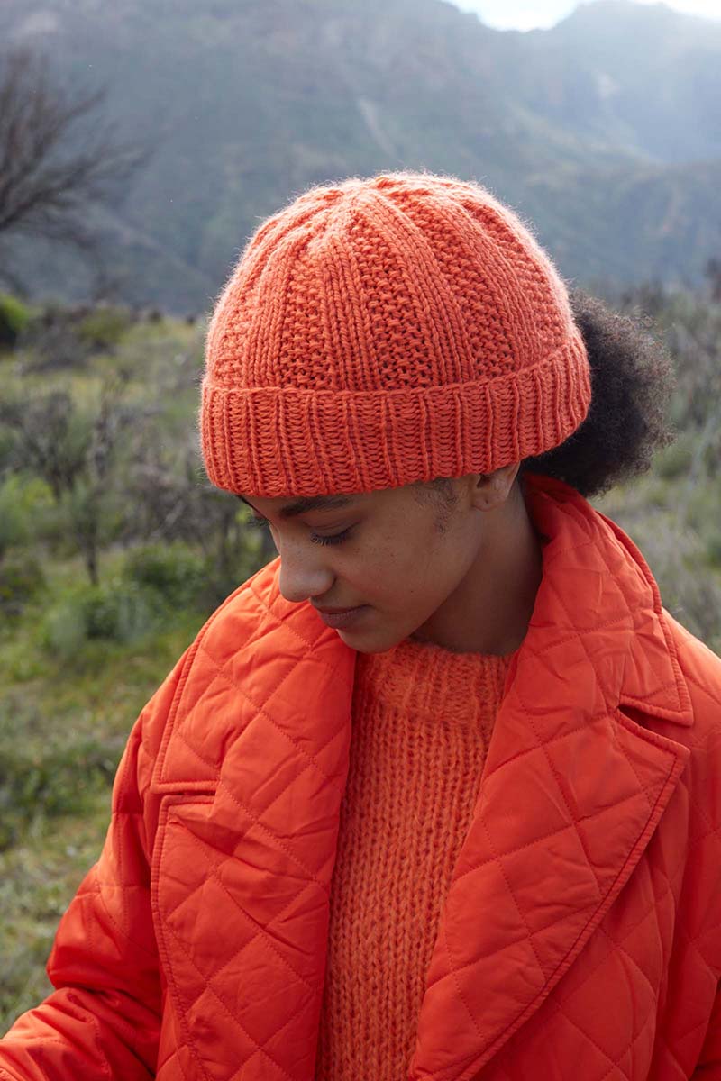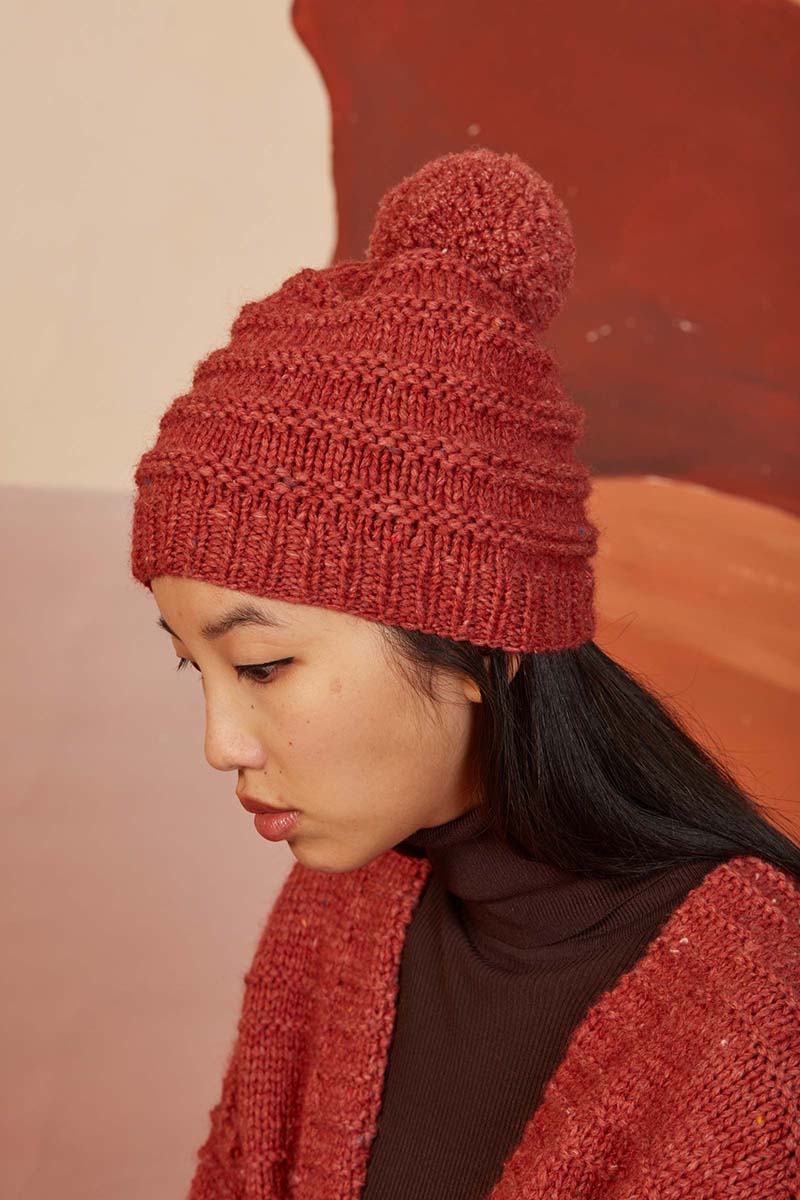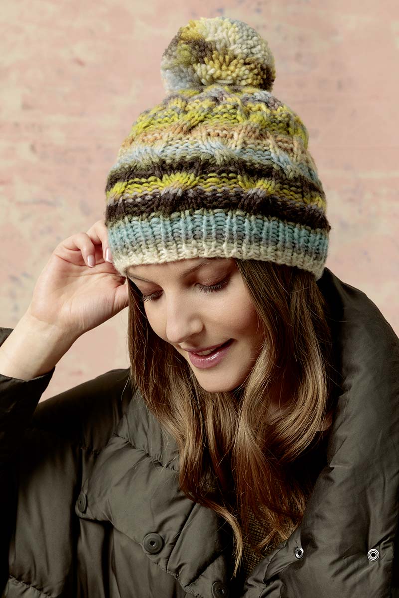 • Le bonnet droit se porte avec ou sans pompon (en laine ou bien en fausse fourrure végétale). Optez pour une laine assez grosse ou tordue et tricotez un peu serré ou faites un point fantaisie qui resserre le fil, comme des torsades, des côtes fantaisies, du point de blé, ou riz etc…
