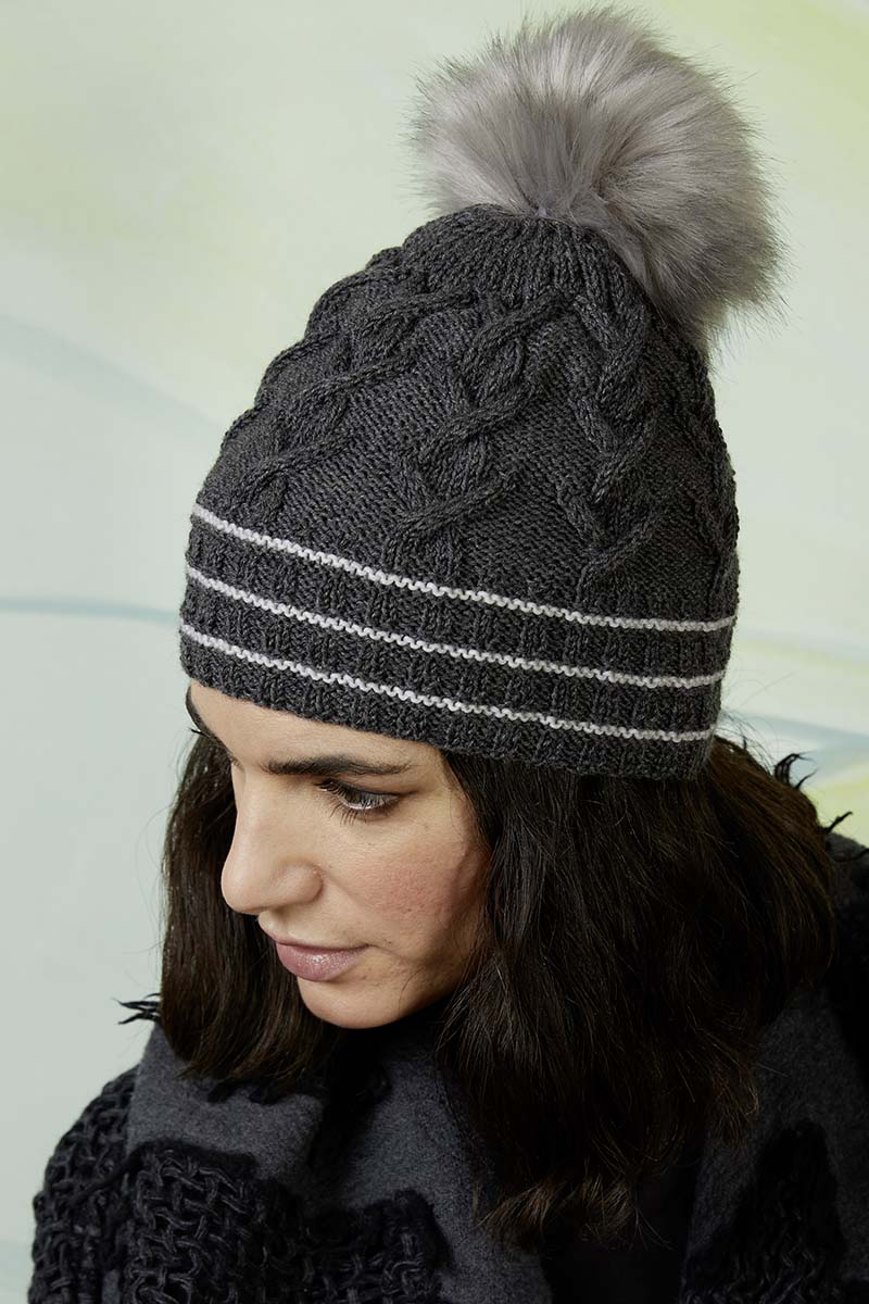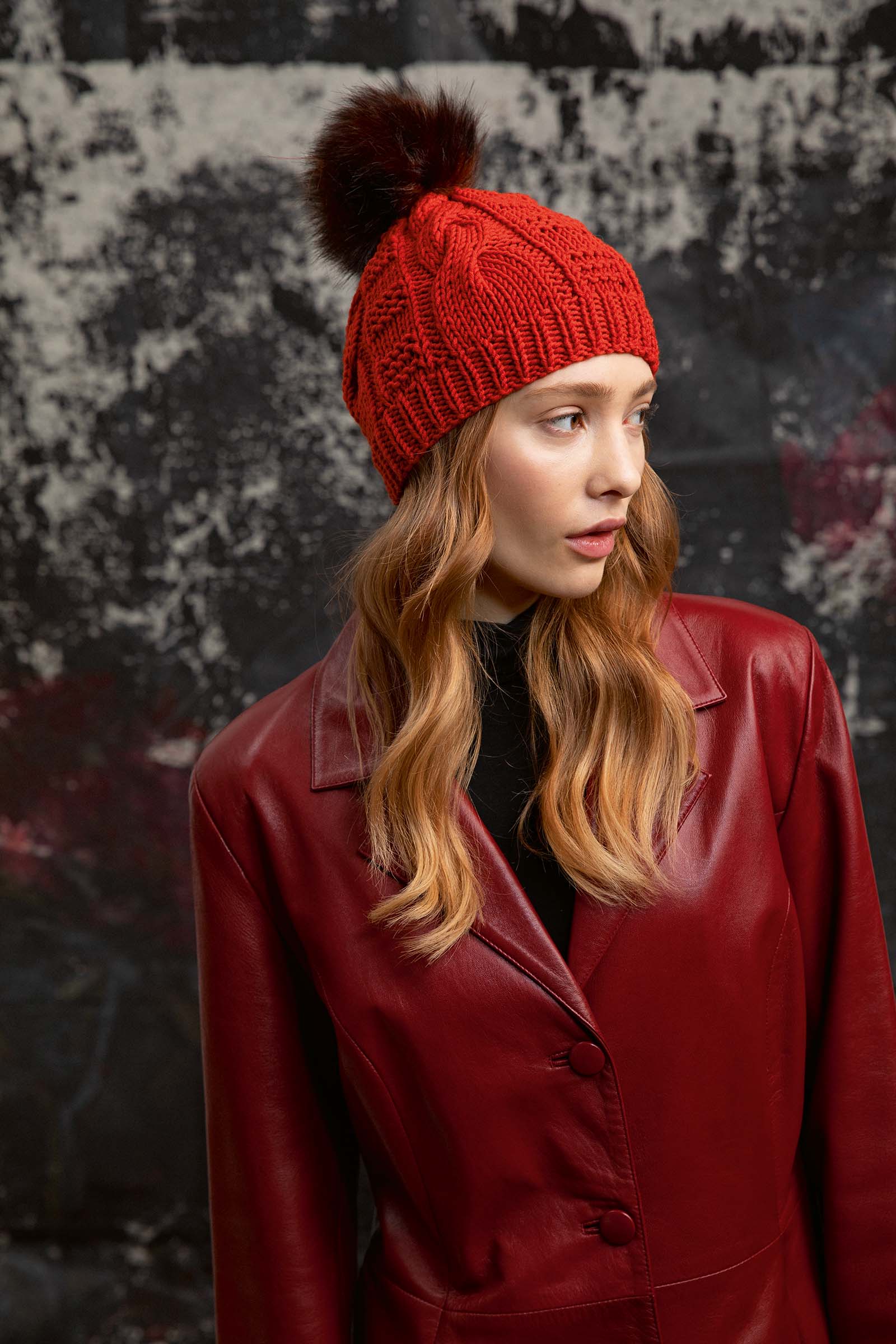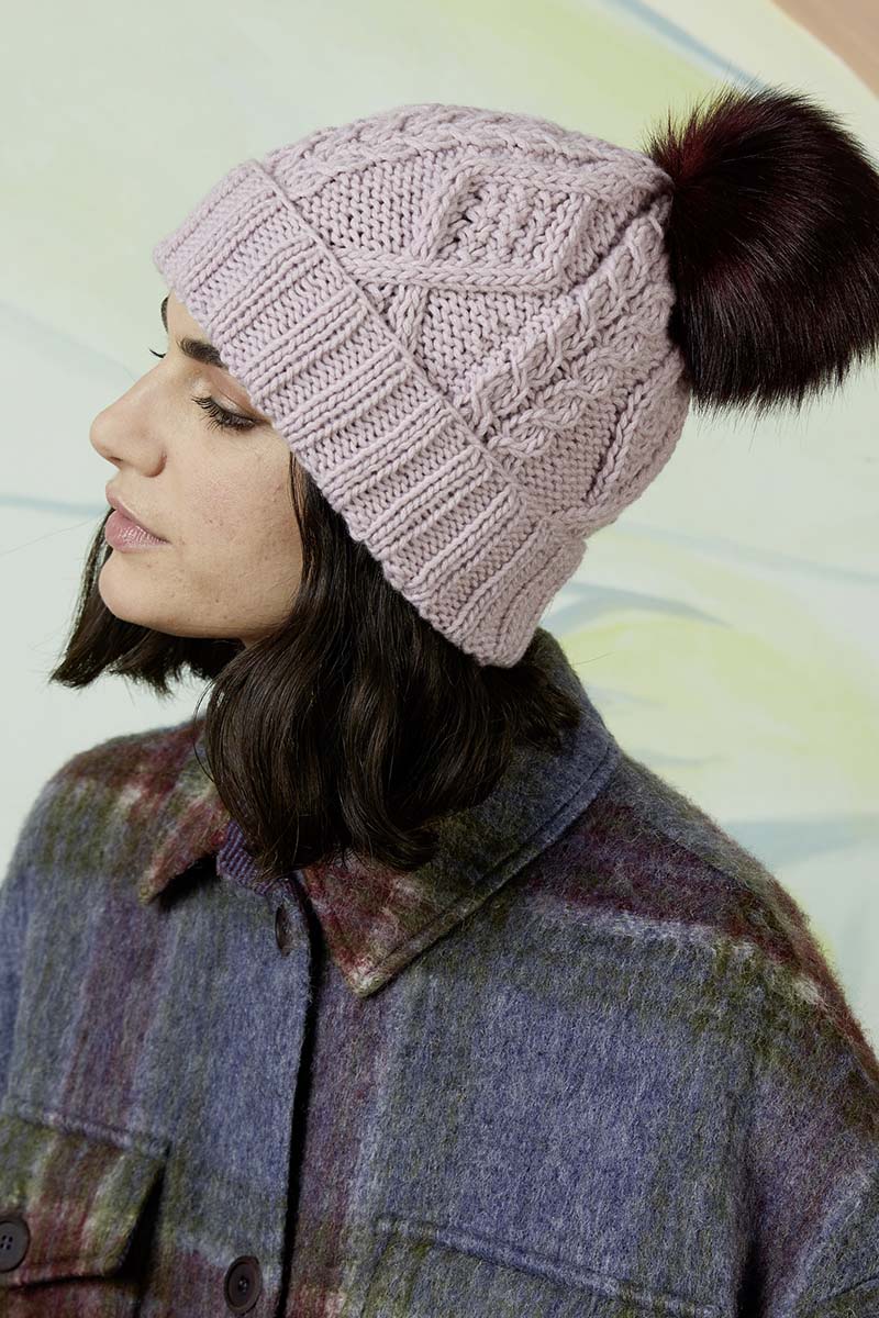 12. Bonnet en laine Cashmere Light de Lang Yarns et pompon fausse fourrure Lovafur