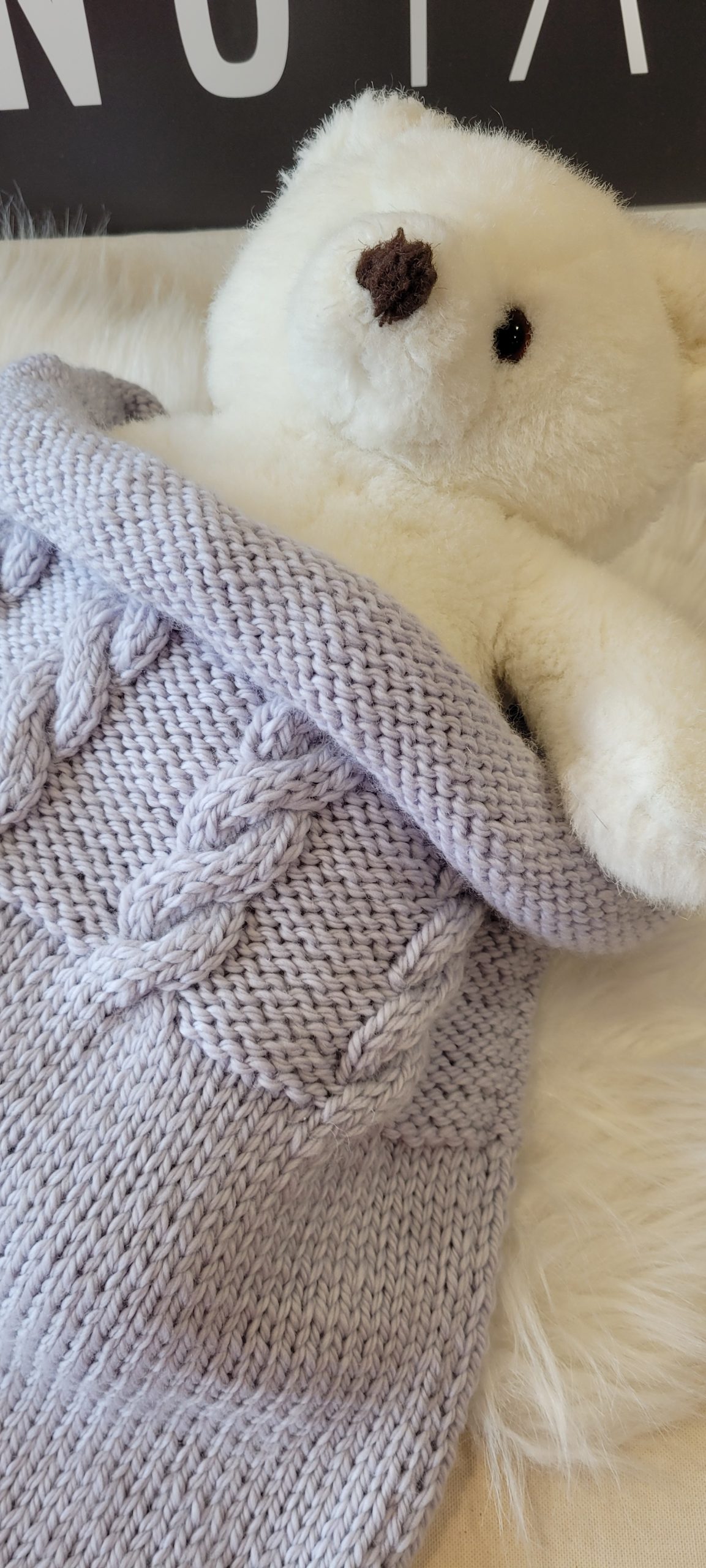 Vous trouverez ci-dessous un tuto tricot pour tricoter un cocon de naissance réalisé par nos soins.