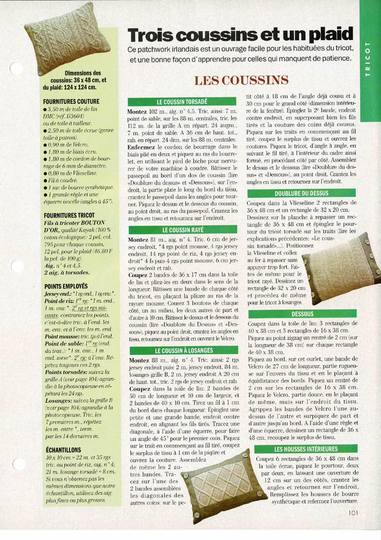 Tricoter un coussin Flandre de Bouton d’Or