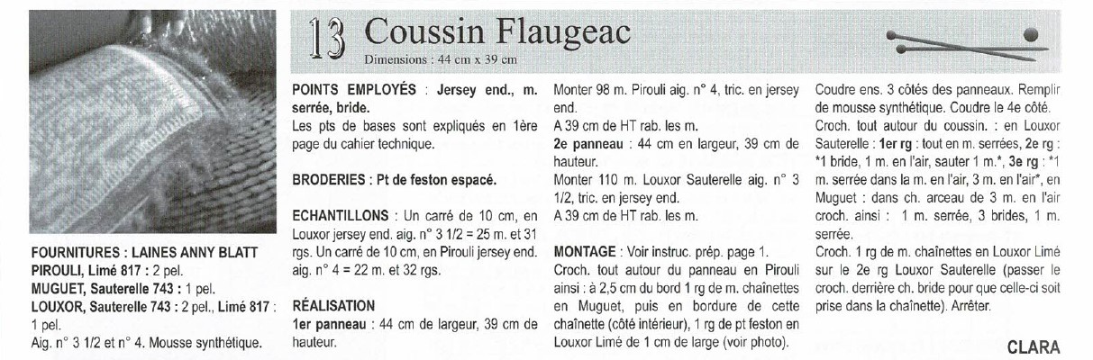 Tricoter un coussin Flagnac de Bouton d’Or