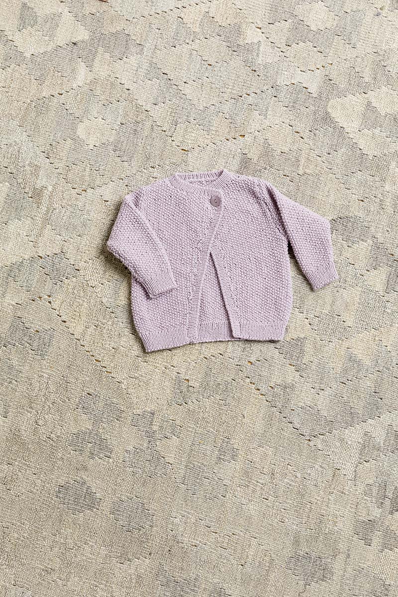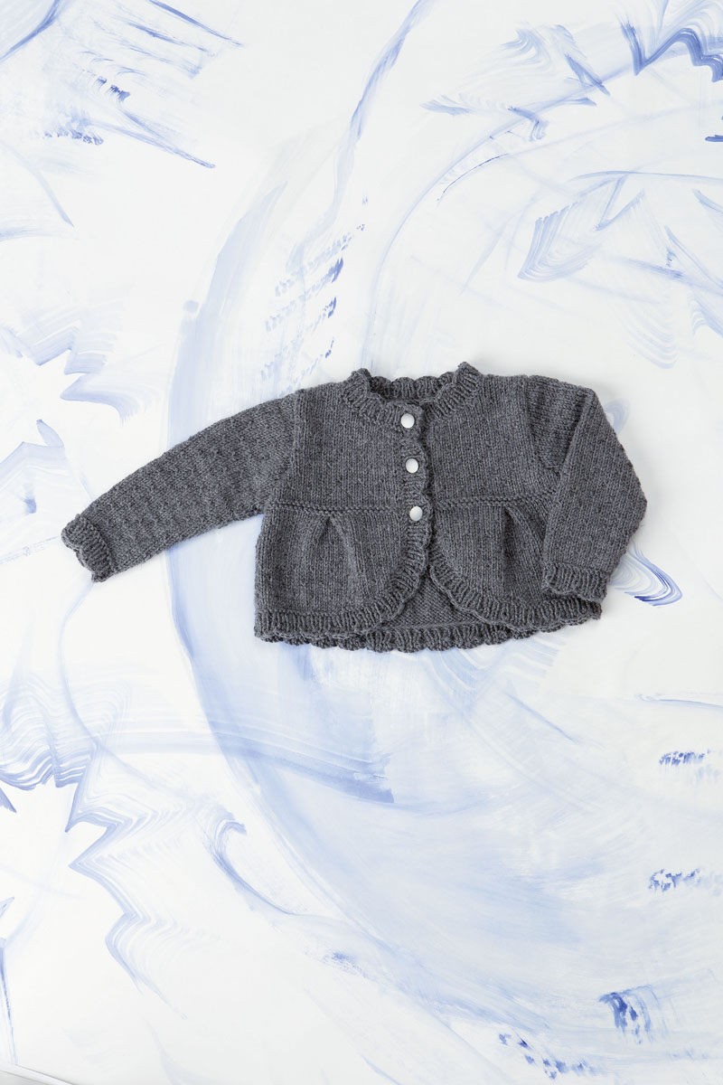- Taille 2 ans : 3 pelotes de laine Baby Superwash de Bouton d’Or coloris Perle 0436 + 1 pelote de laine Baby Superwash de Bouton d’Or coloris Blanc 050 + 9 boutons.