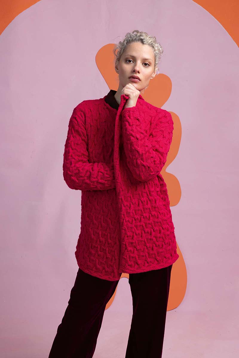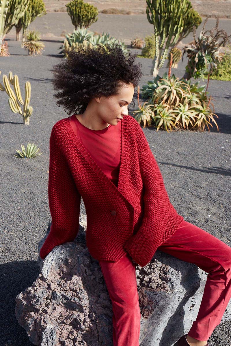 Tricoter un gilet Croisière Superwash pour femme rouge en laine