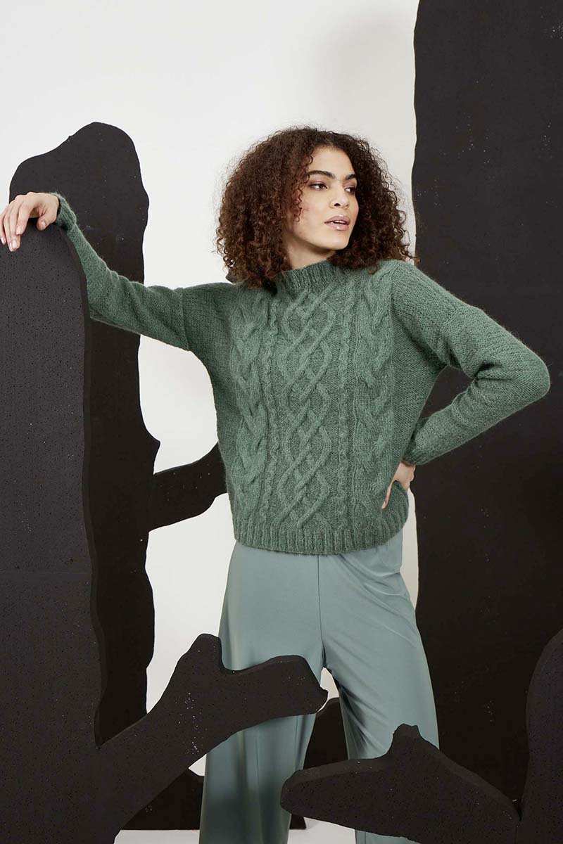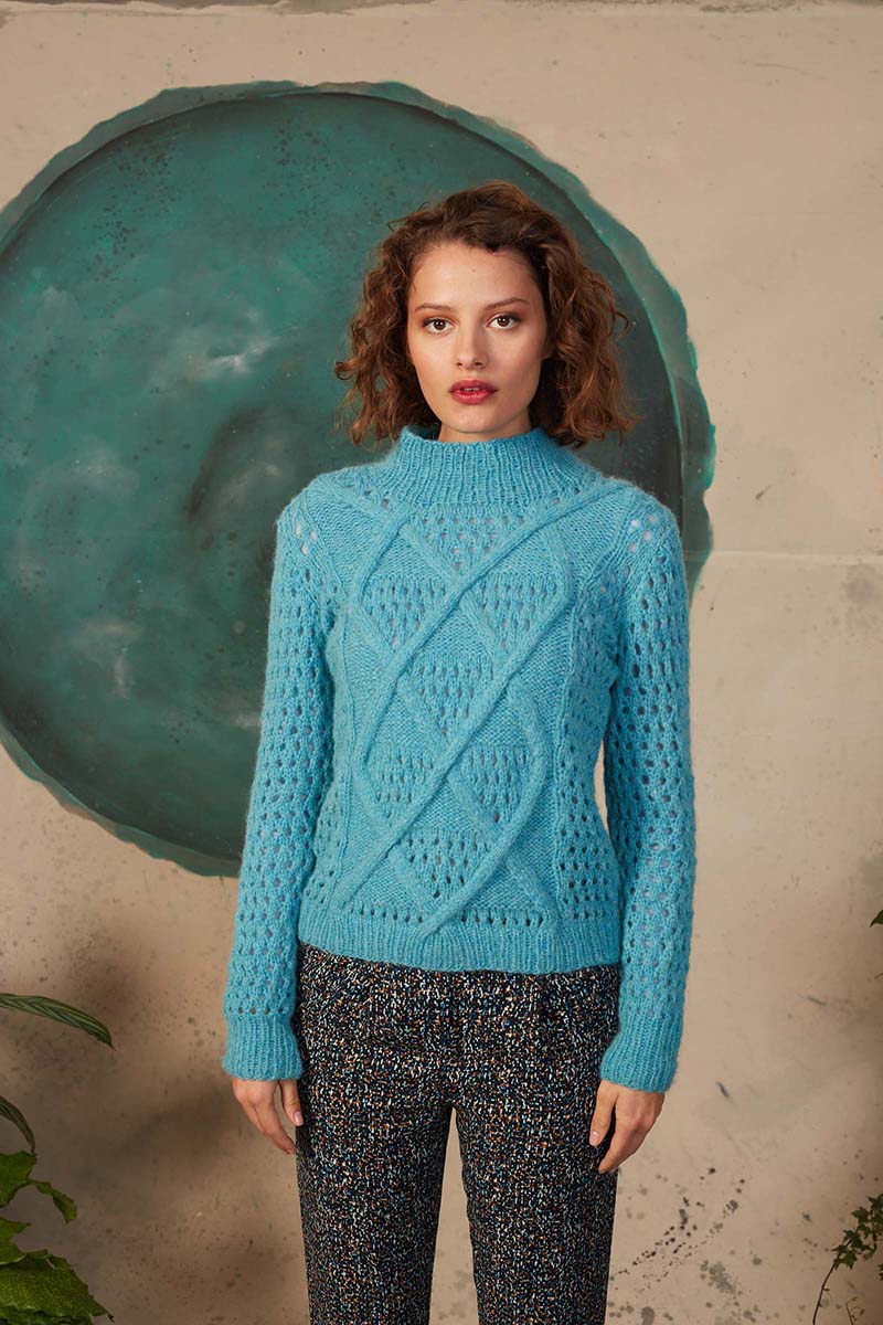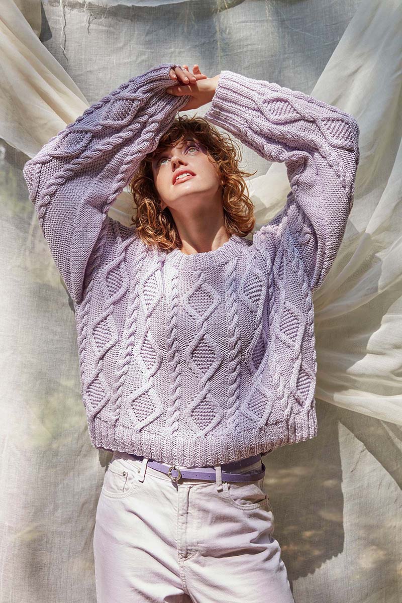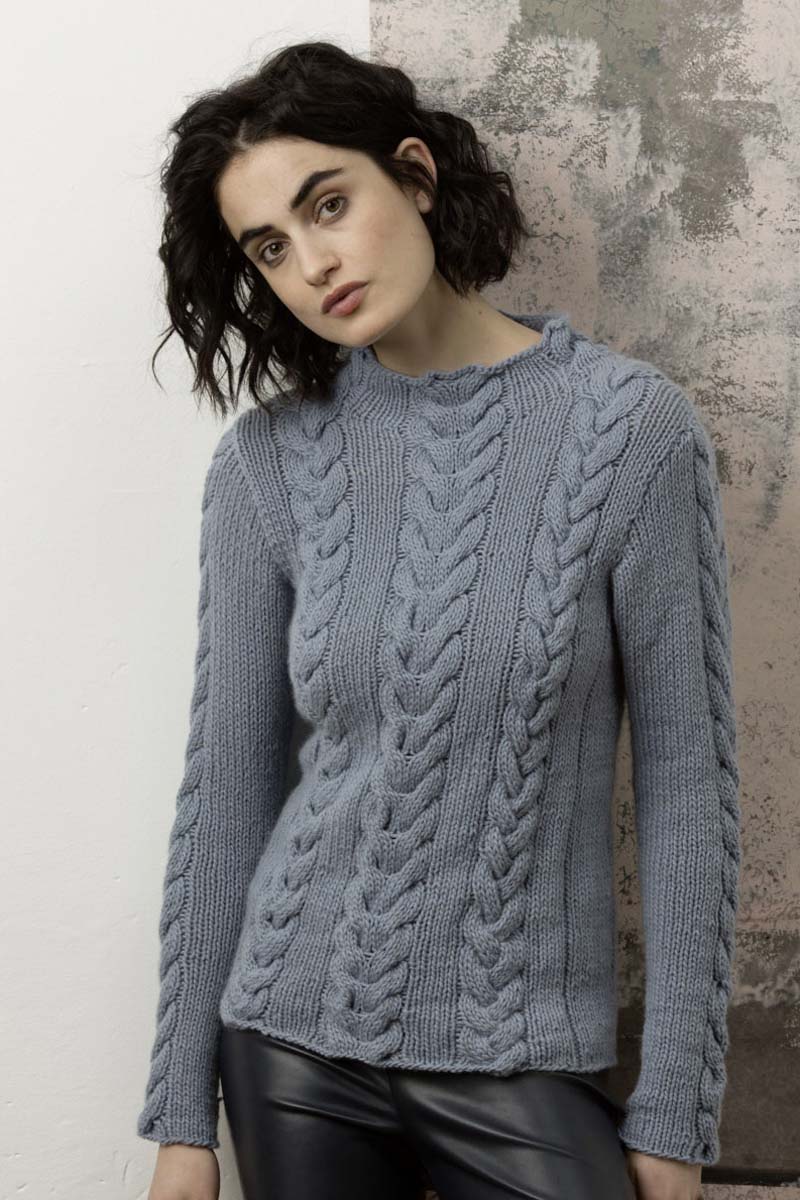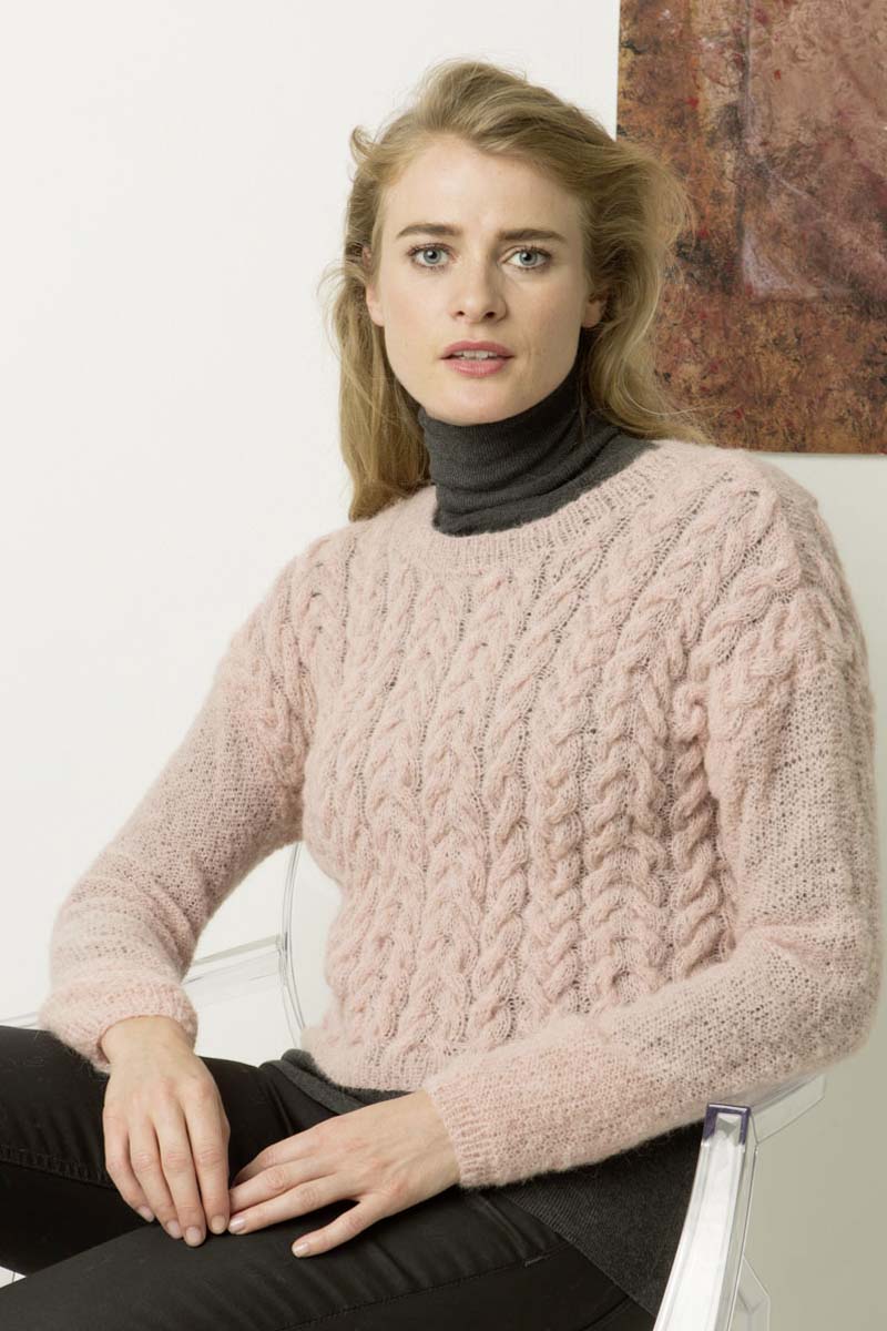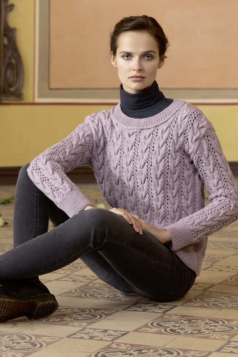 - Pull à torsades en laine Merino 150 et Lace de Lang Yarns