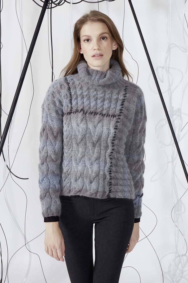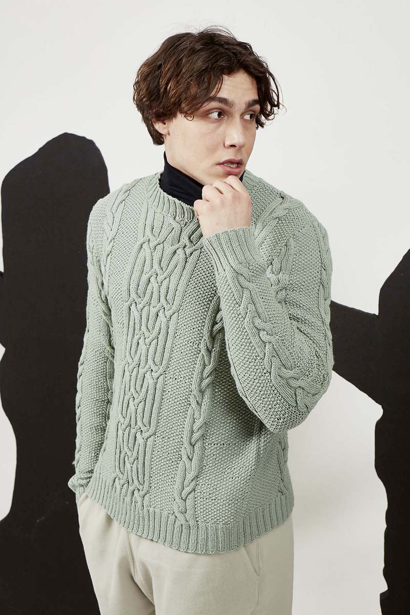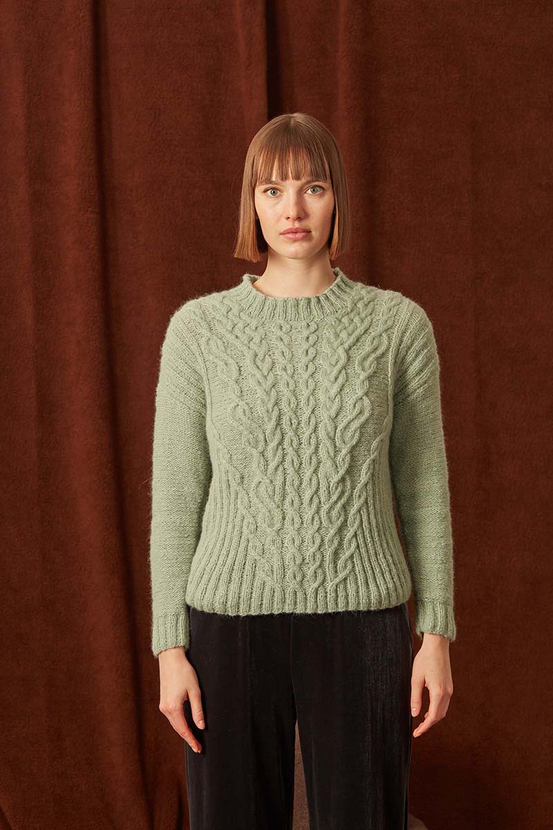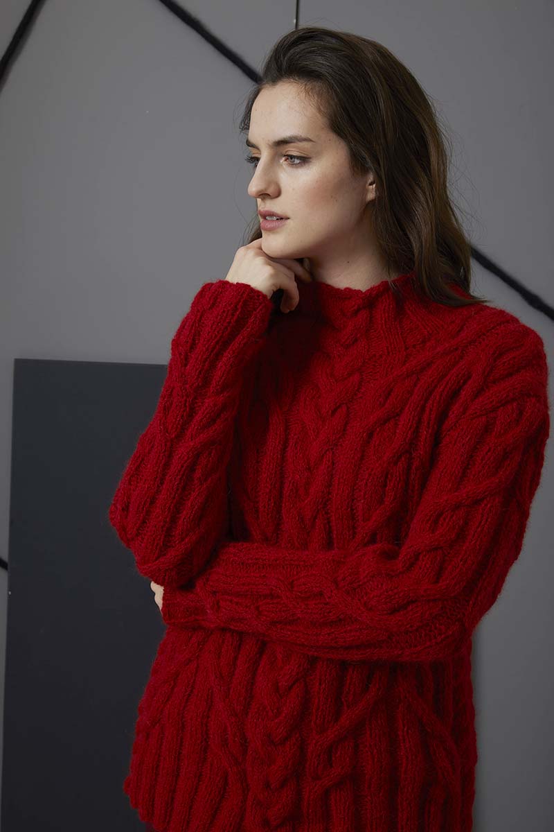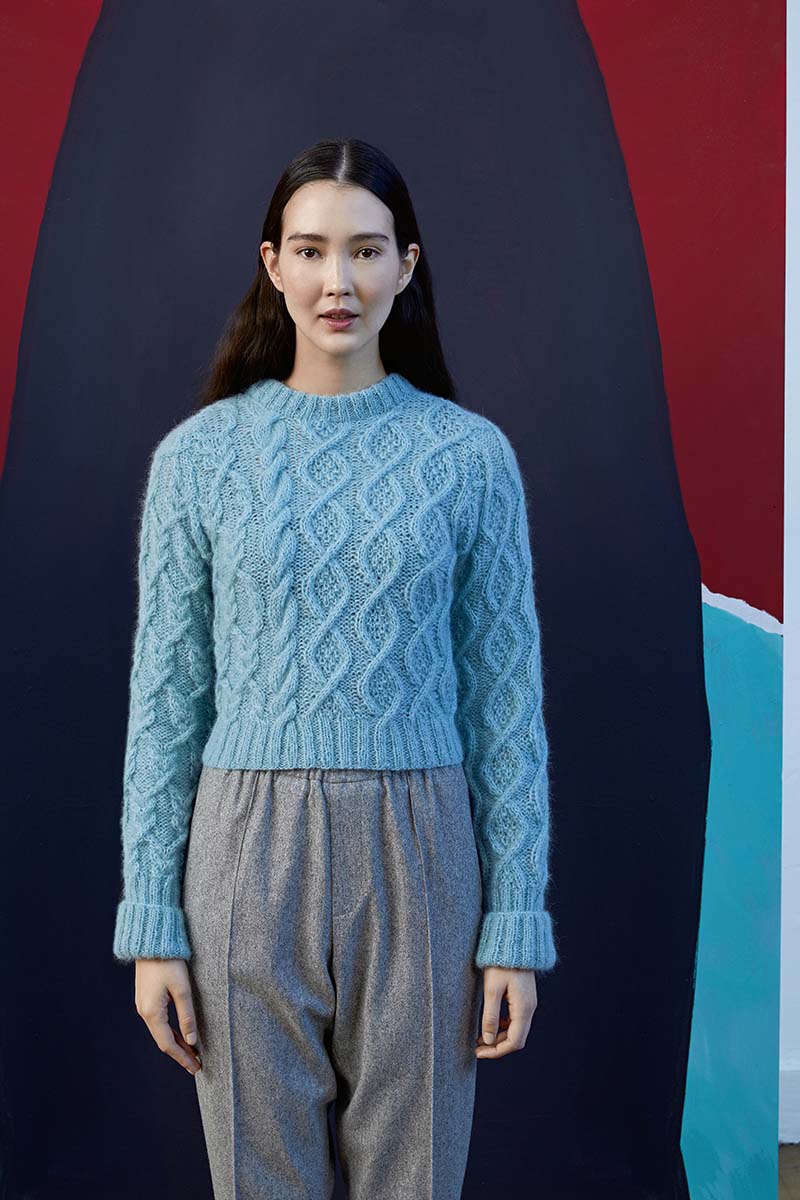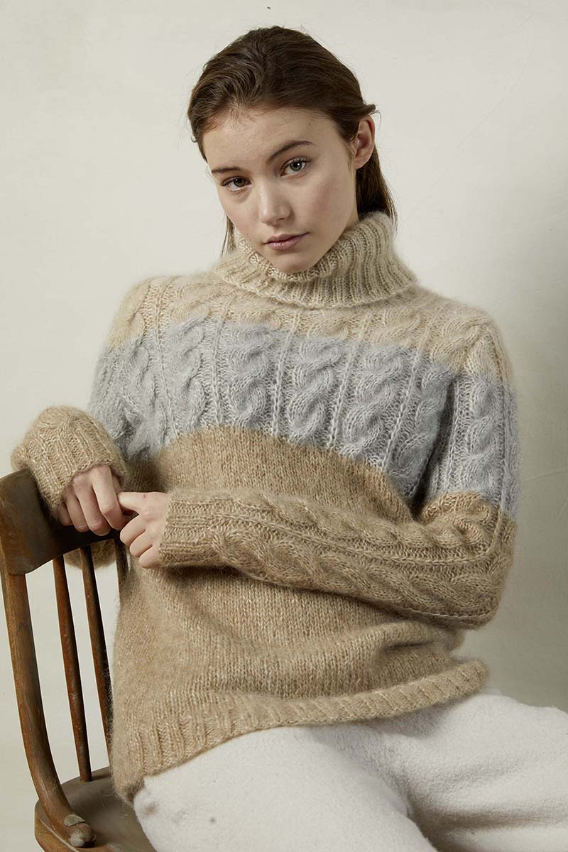 - Pull à torsades en laine Merino 150 et Lace de Lang Yarns
