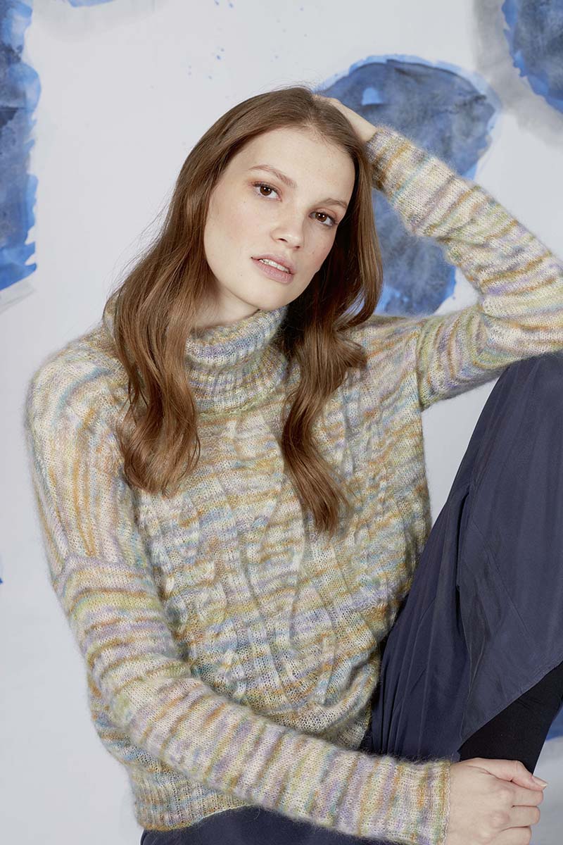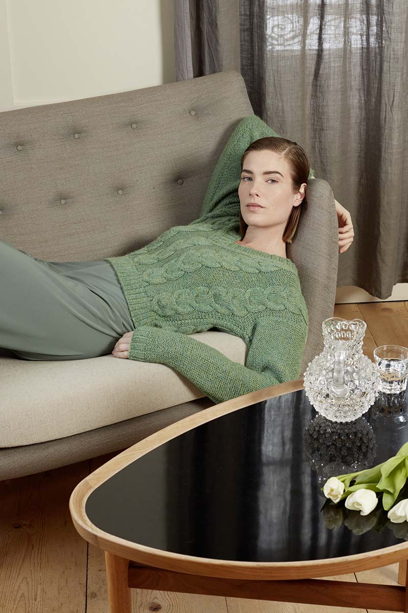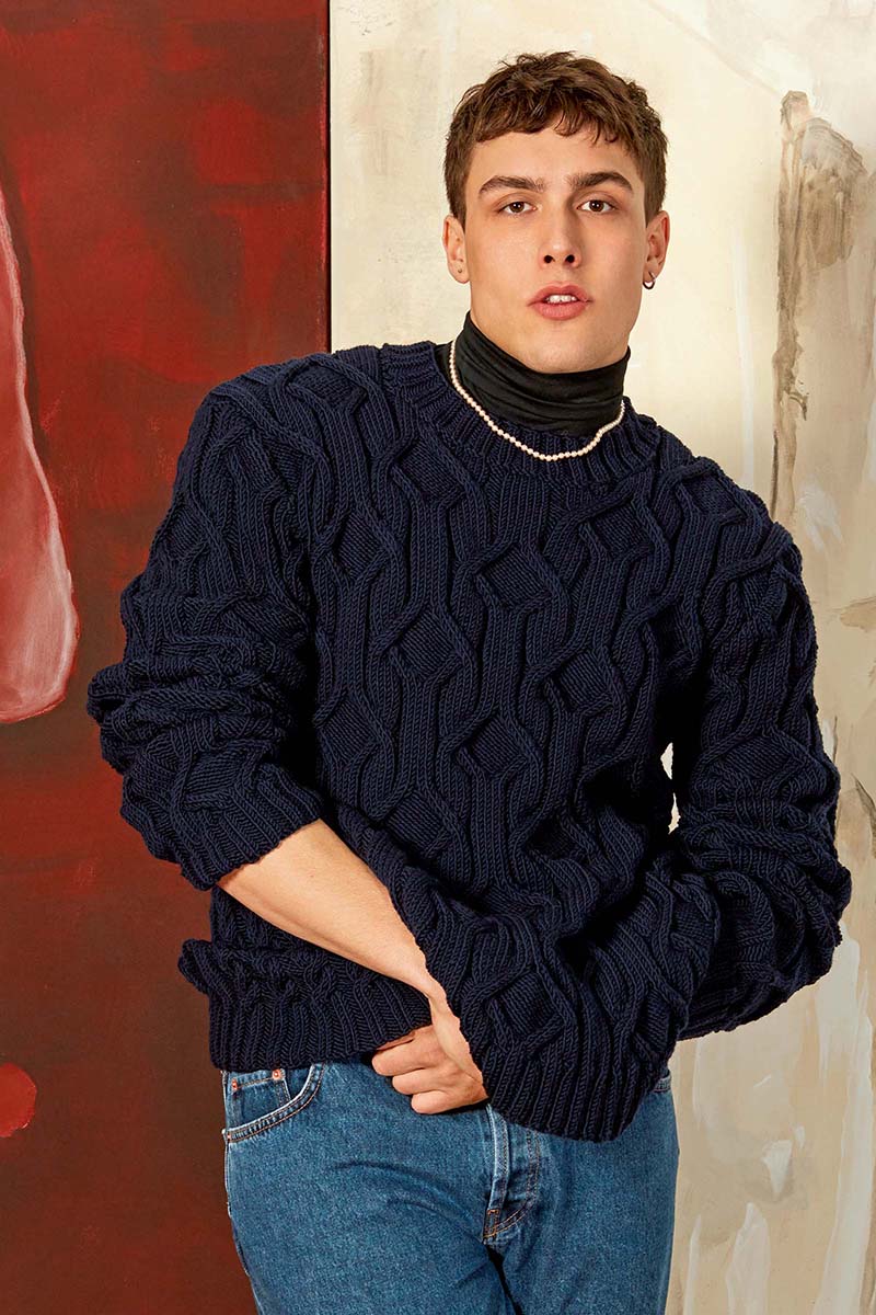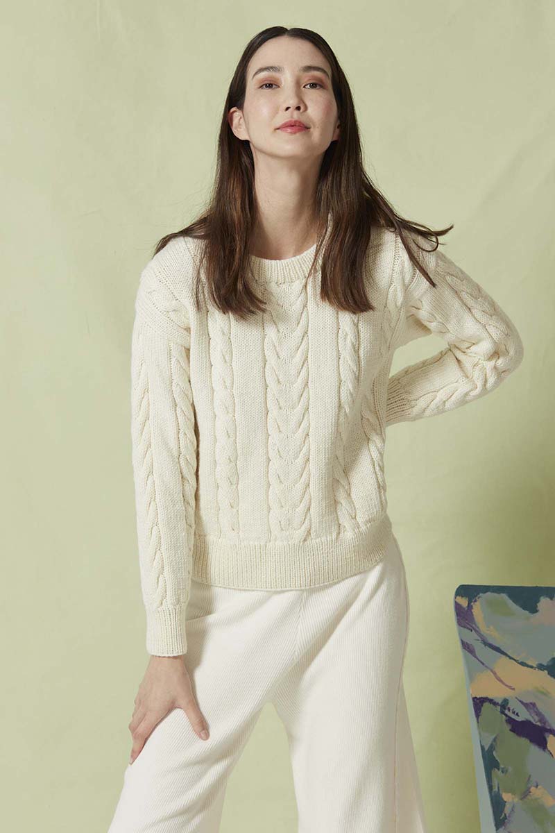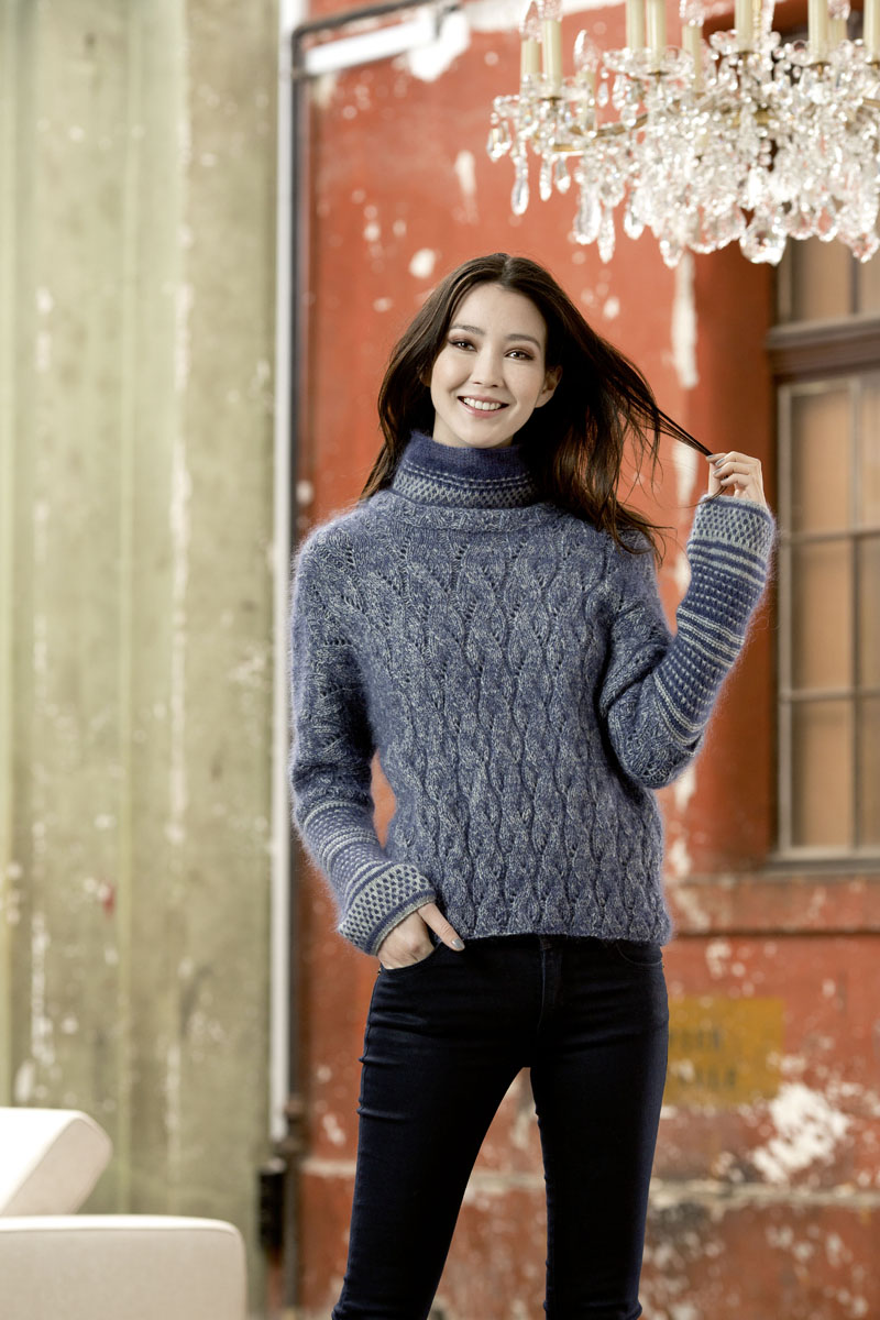 - Pull à torsades en laine Merino 150 et Lace de Lang Yarns