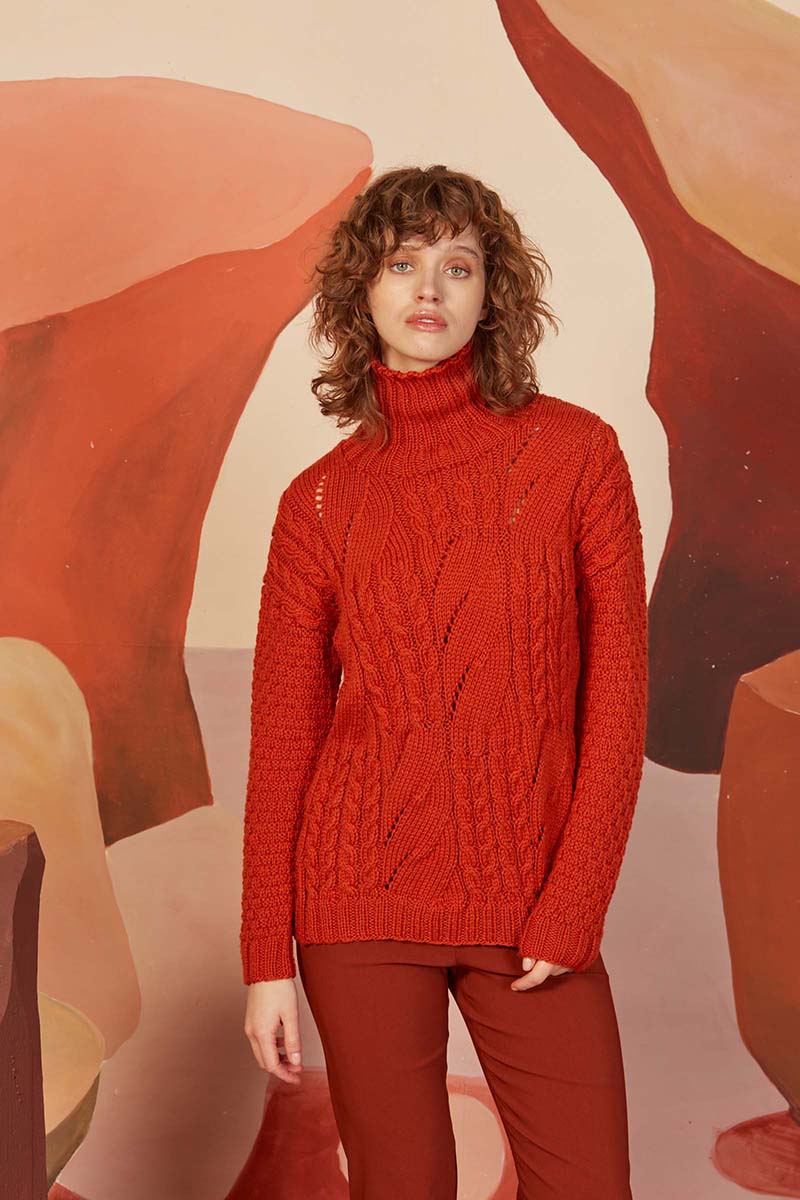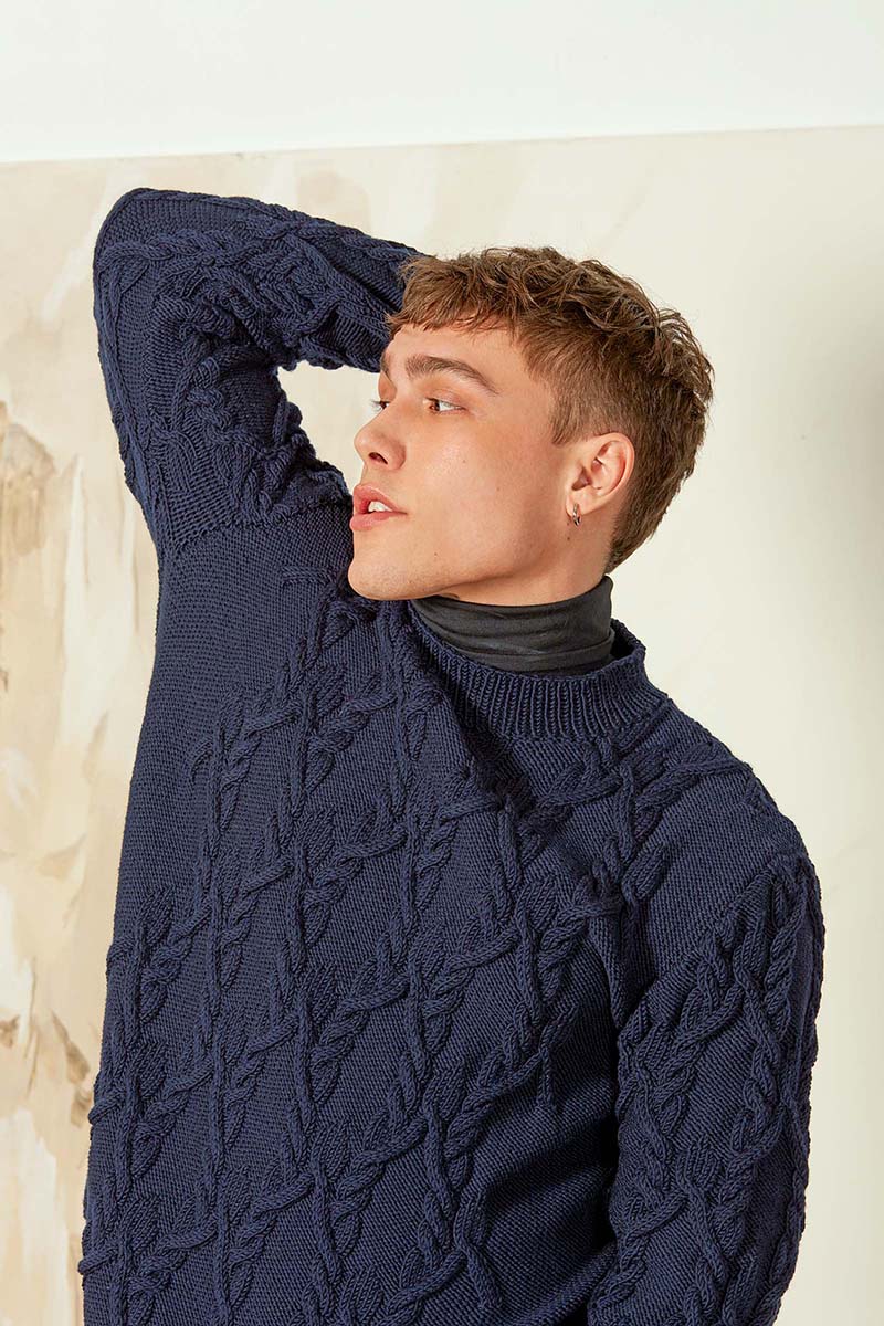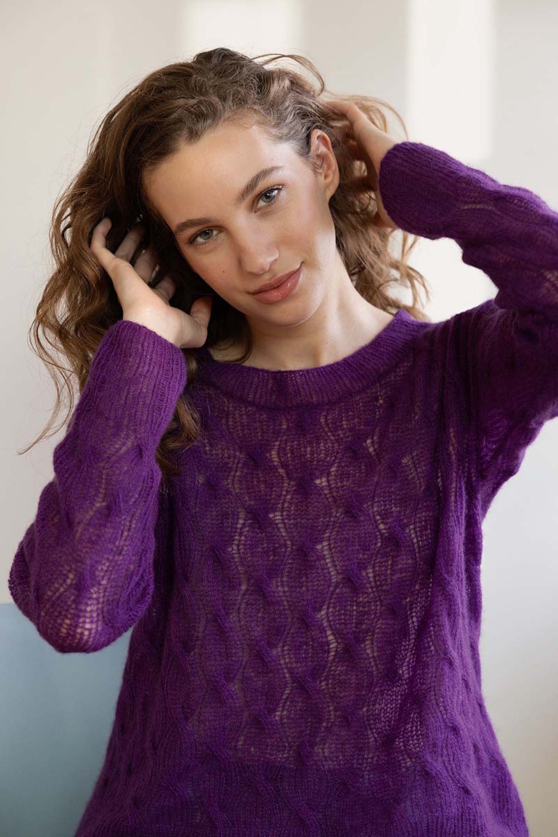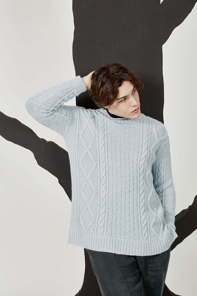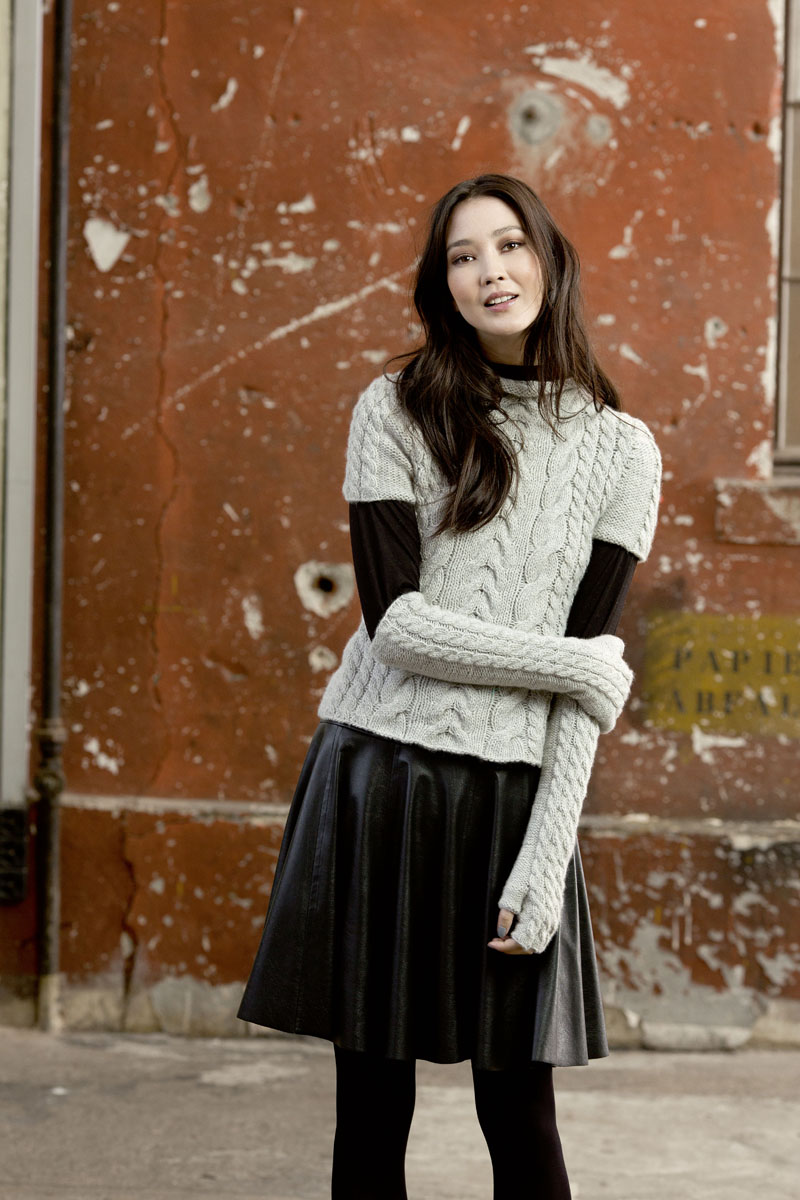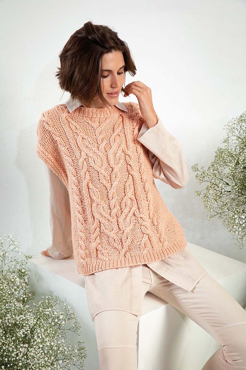 - Pull à torsades en laine Merino 150 et Lace de Lang Yarns