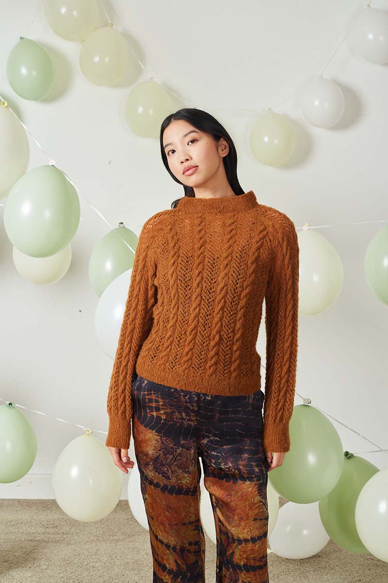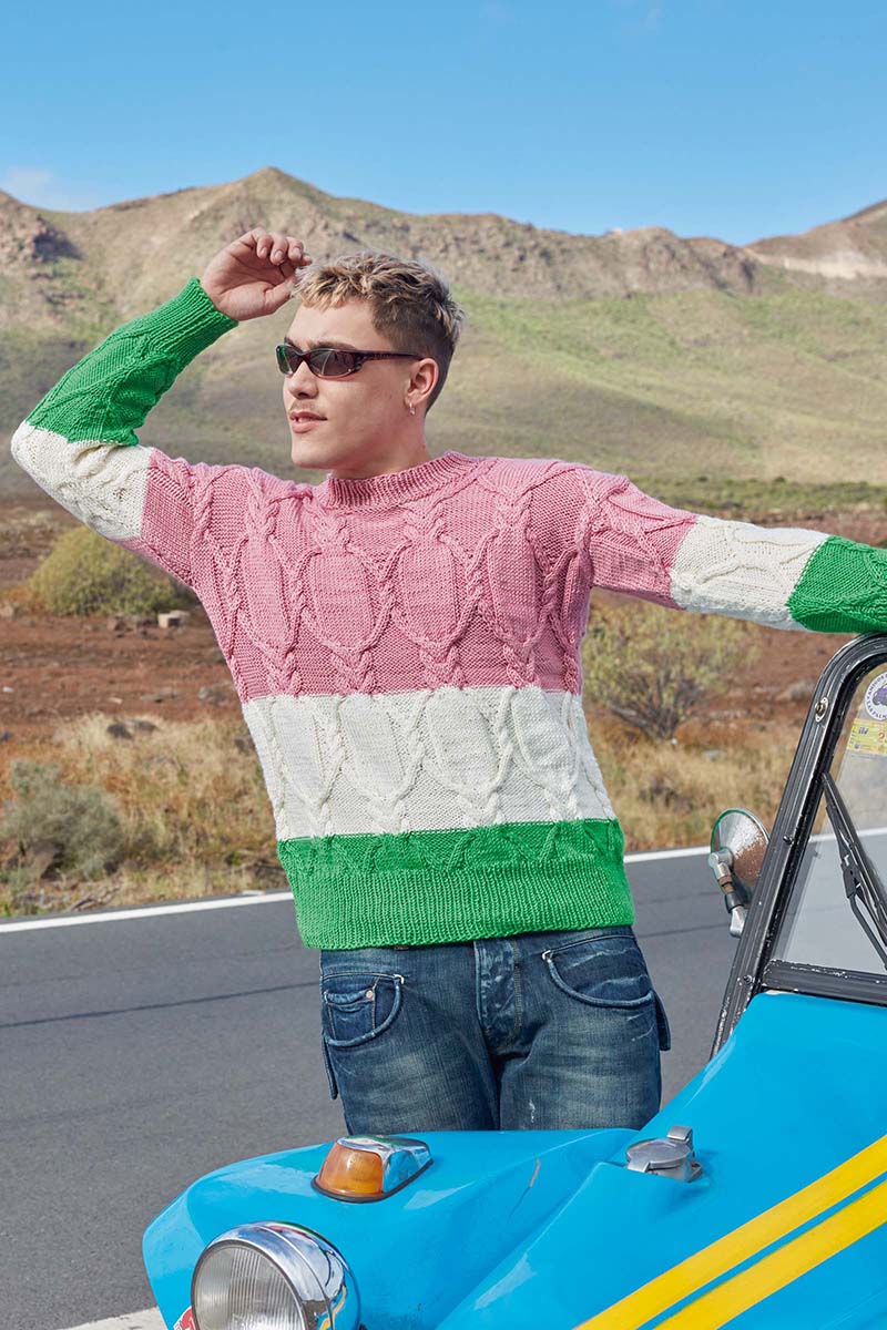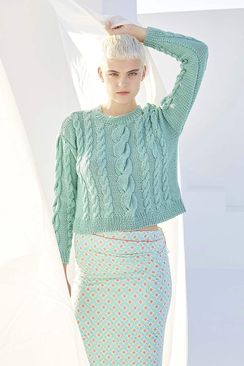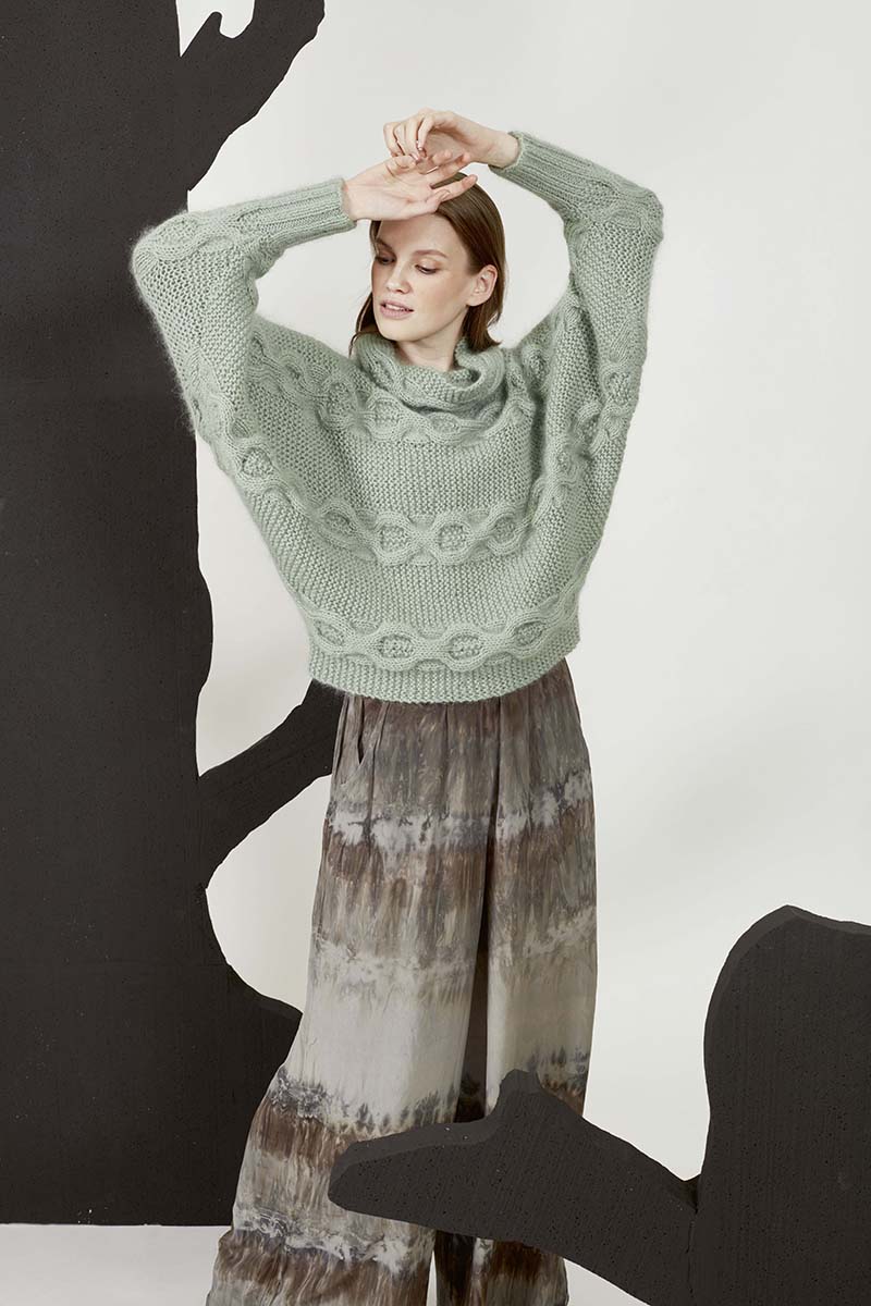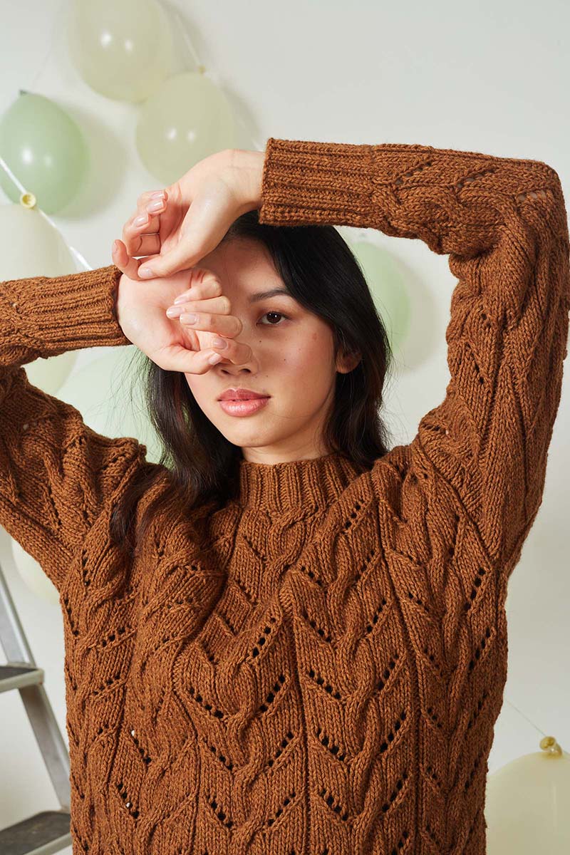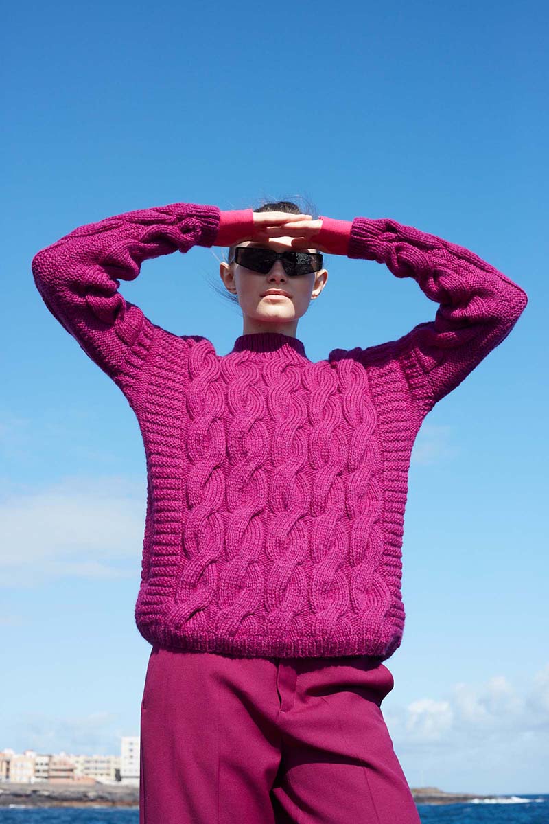 - Pull à torsades en laine Merino 150 et Lace de Lang Yarns