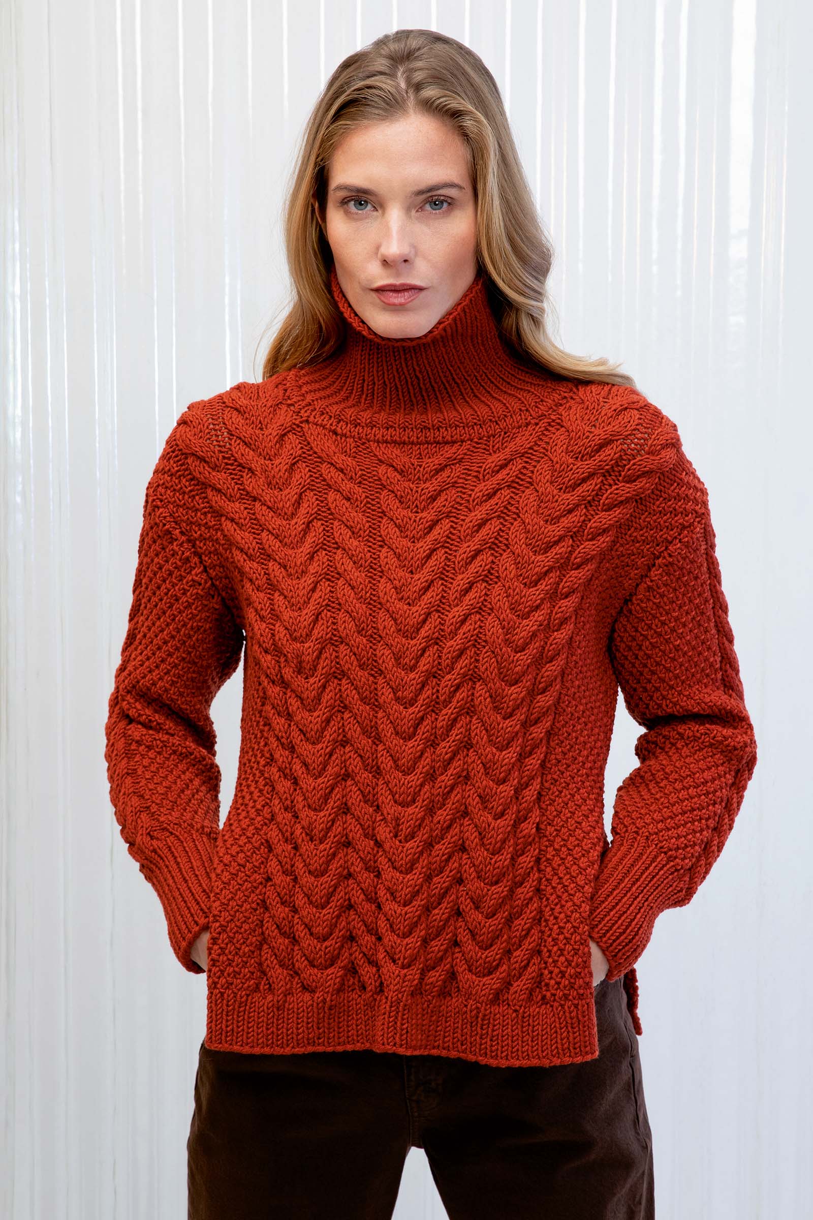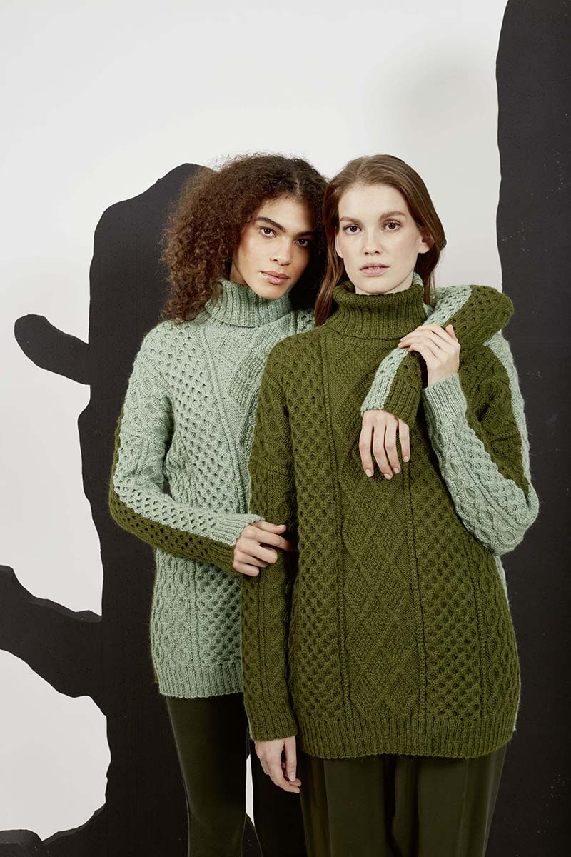 Doté d’une laine épaisse et chaude, d’un col rond et d’un maillage très serré, le pull irlandais était à l’origine le vêtement que portaient autrefois les habitants des îles d’Aran, ainsi que ses pêcheurs, pour se préserver du froid et de l’humidité en mer. En effet, le pull irlandais a pour particularité de pouvoir absorber jusqu’à 30% de son poids en humidité.