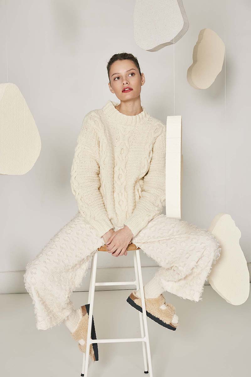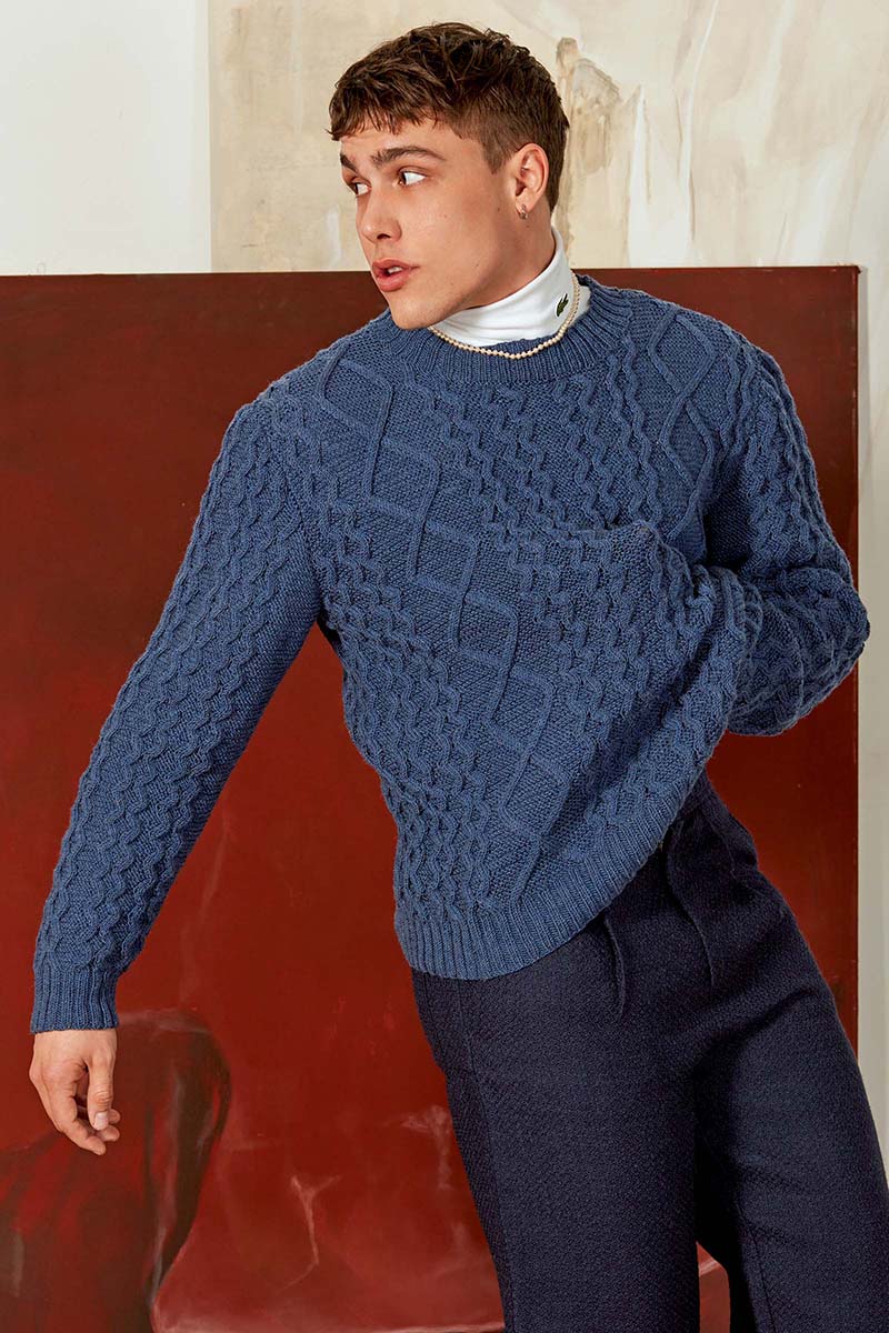 En termes de fabrication, ce pull a toujours été tricoté à la main. Sa laine était alors prélevée sur des moutons Irlandais, élevés au sein des îles d’Aran. Chaude, douce, et épaisse : on devait cette qualité à l’herbe locale, très exposée aux vents marins. Sa teneur en minéraux en faisait une laine aux propriétés exceptionnelles.