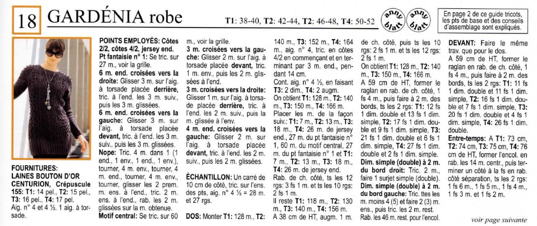 Voici les explications d’une jolie robe style Irlandais, modèle Gardénia 18 d’Anny Blatt.