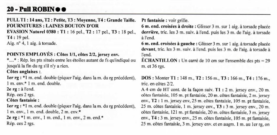 Voici les explications d’un joli pull pour homme Irlandais, modèle Robin 10 de Bouton d’Or.