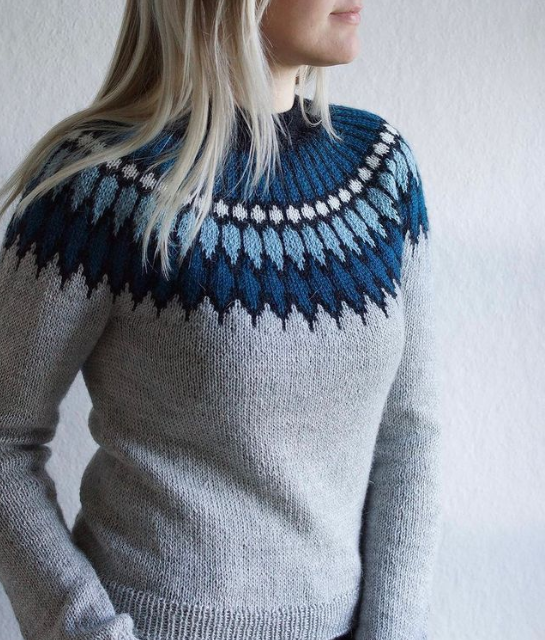 Le motif jacquard circulaire était apparu depuis longtemps et les tricoteuses de tout le pays ont depuis décliné ce motif avec des variations illimitées. Les motifs ressemblent un peu à ceux du sud de la Suède (tricotés cependant avec une laine plus fine) et à ceux des couleurs vives du costume national du Groenland.