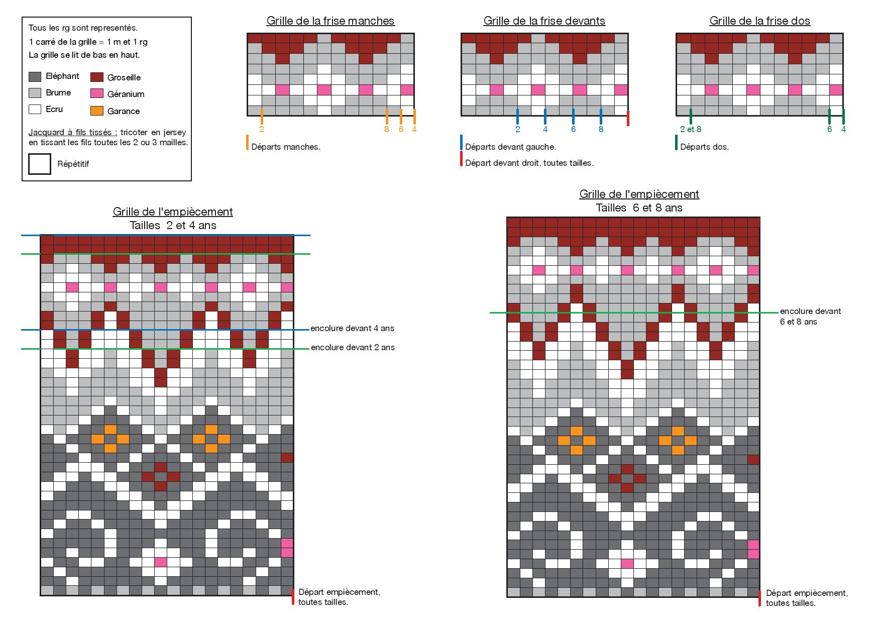 Attention, sur ce PDF, ne tenez pas compte de la grille de point fantaisie n°2 que vous trouverez juste après la photo, il correspond à un autre modèle. Les explications du pull Gran commence juste après.