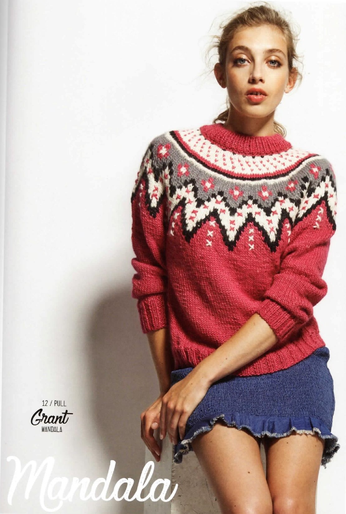 Vous pouvez trouver ce pull islandais pour femme dans le catalogue de la marque Française Anny Blatt n°224, modèle Grant n°12. Il est tricoté en laine Mandala qui malheureusement n’existe plus… Je peux vous conseiller d’utiliser à la place la laine Mérino + de Lang Yarns.