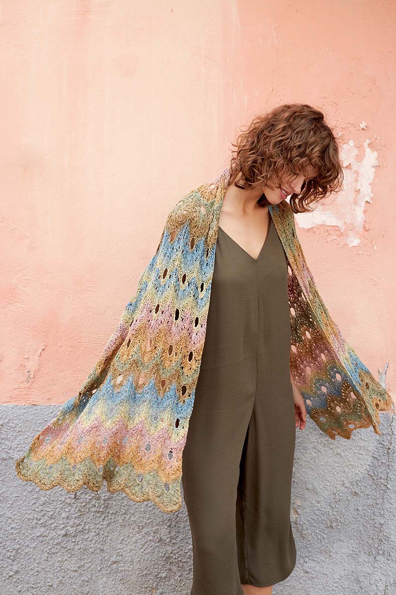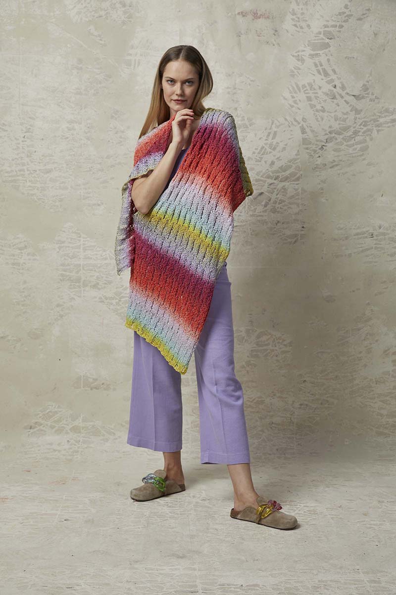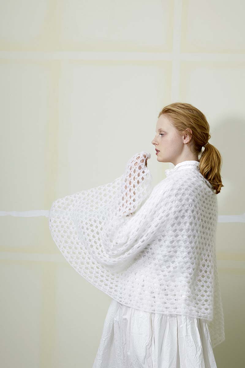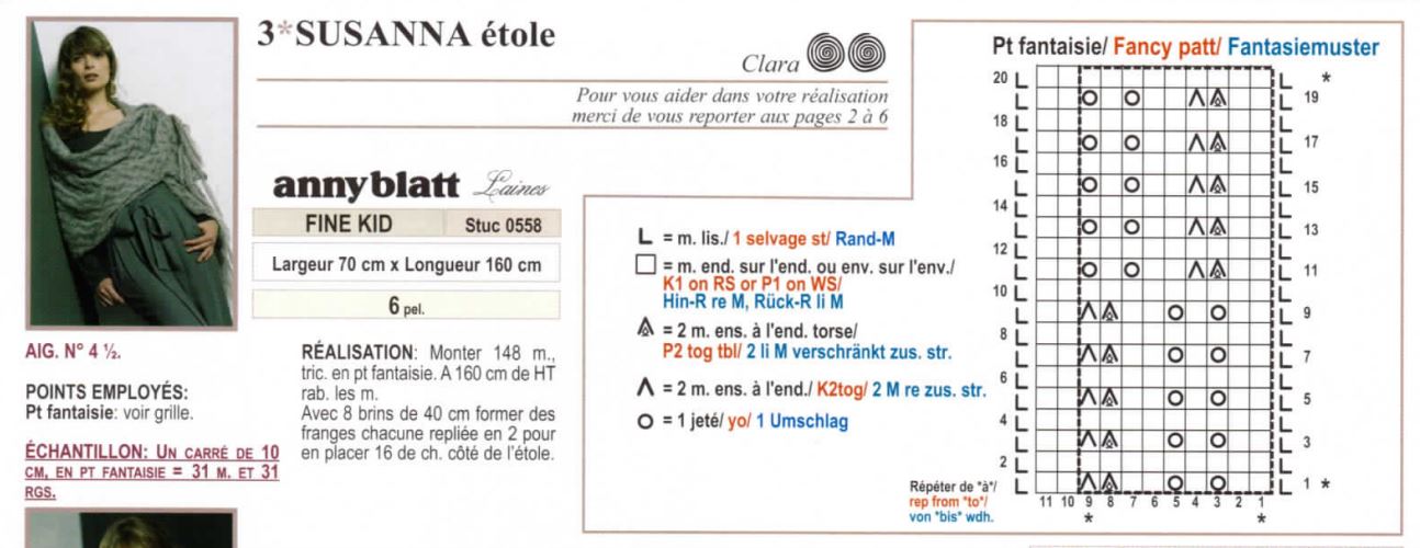 Ce modèle d’étole, Susanna d’Anny Blatt mesure 70 cm x 160 cm et est réalisée avec un joli point fantaisie.