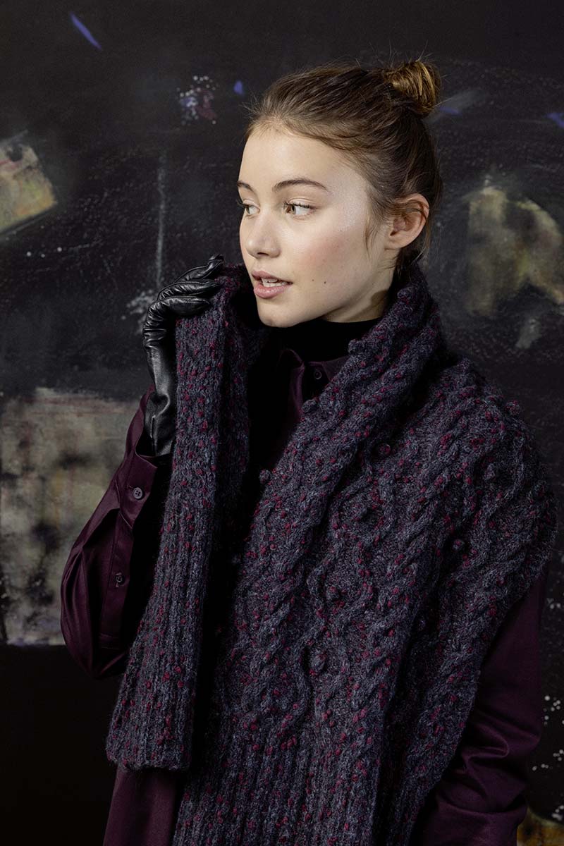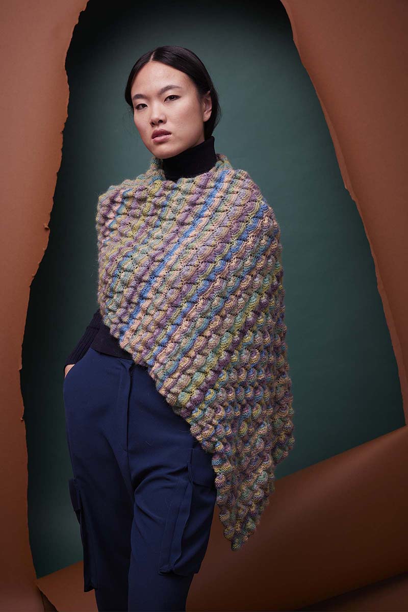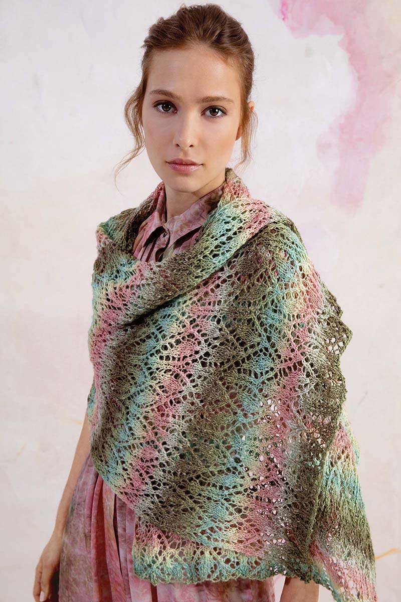 Ce modèle d’étole, Susanna d’Anny Blatt mesure 70 cm x 160 cm et est réalisée avec un joli point fantaisie.