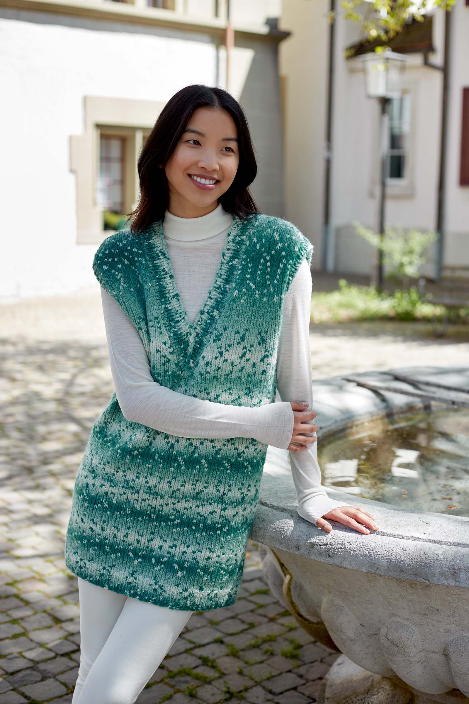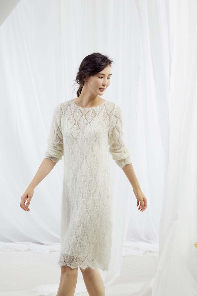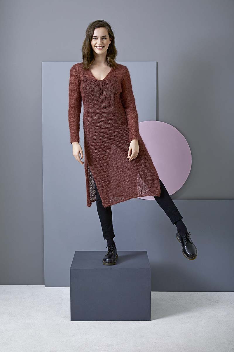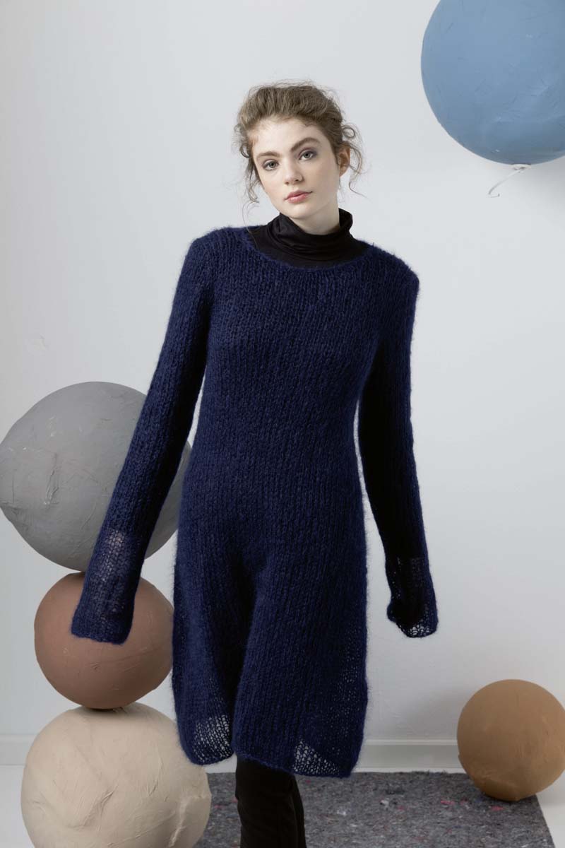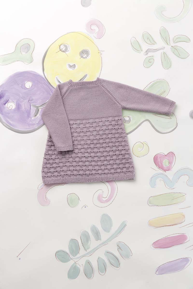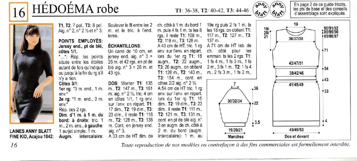 Cette robe, modèle Hédoéma d’Anny Blatt est très simple à tricoter: jersey endroit, point de blé et côtes 1/1 et 3/1. Elle mesure entre 90 et 92 cm de hauteur en fonction de la taille choisie.