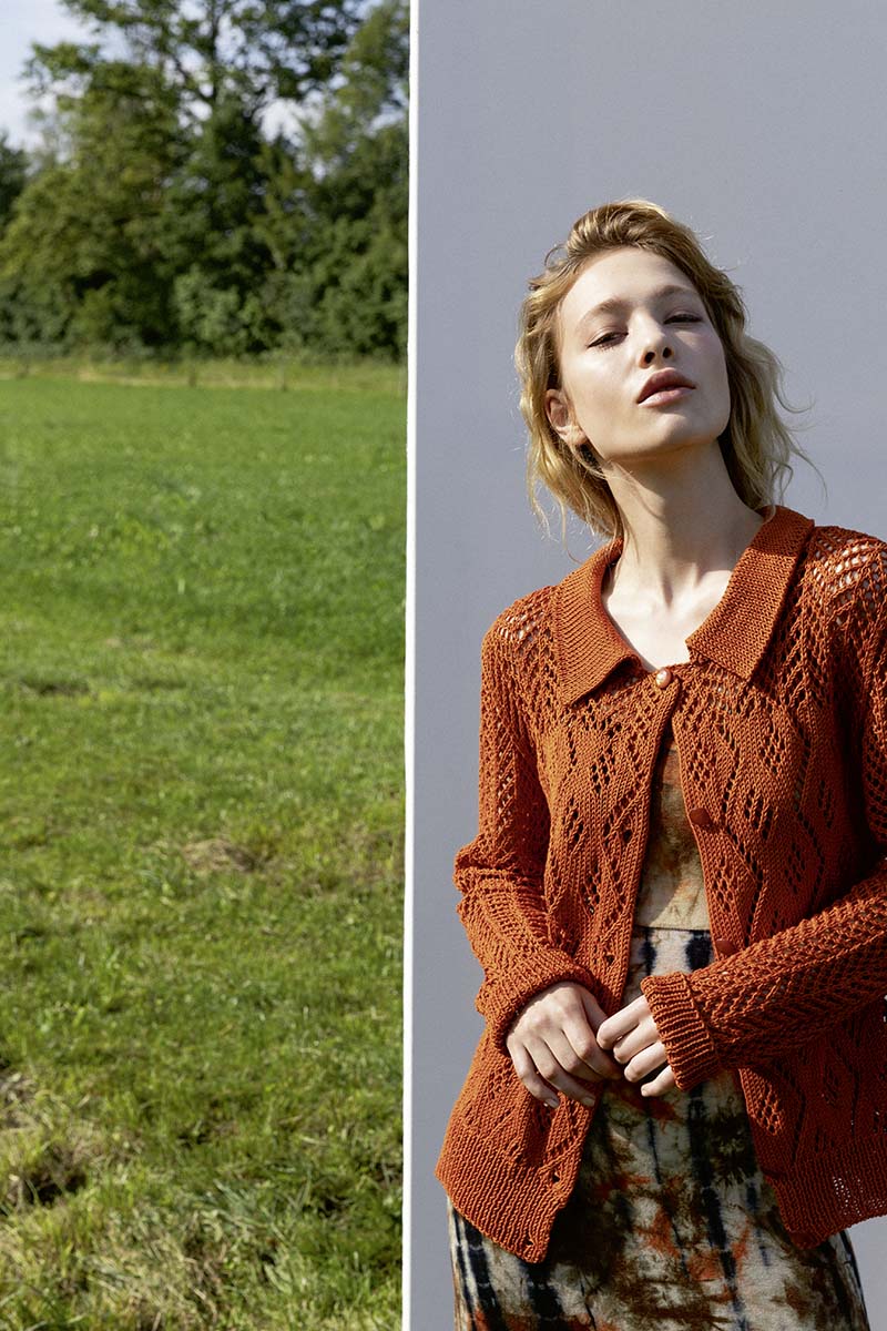 Véritable clin d’oeil aux années 60-70, ce coloris évoque un sentiment de fun et de fantaisie. A mi chemin entre le rose, le nude et le orange, “Cadmium Orange” (code 15-1340) se veut doux, parfumé et très féminin. Découvrez quelques modèles tricot Lang Yarns utilisant cette couleur pour la nouvelle collection Printemps-Eté 2020.