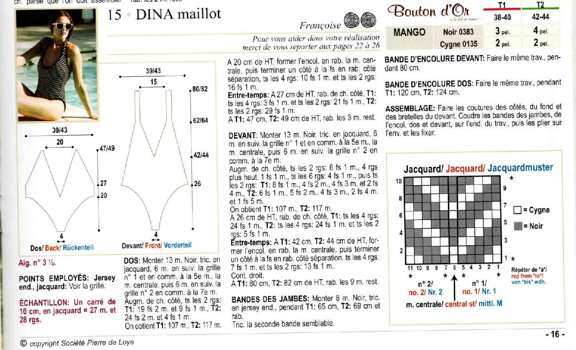 - Taille 38-40: 3 pelotes de coton Mango de Bouton d’Or coloris Noir et 2 pelotes coloris Cygne