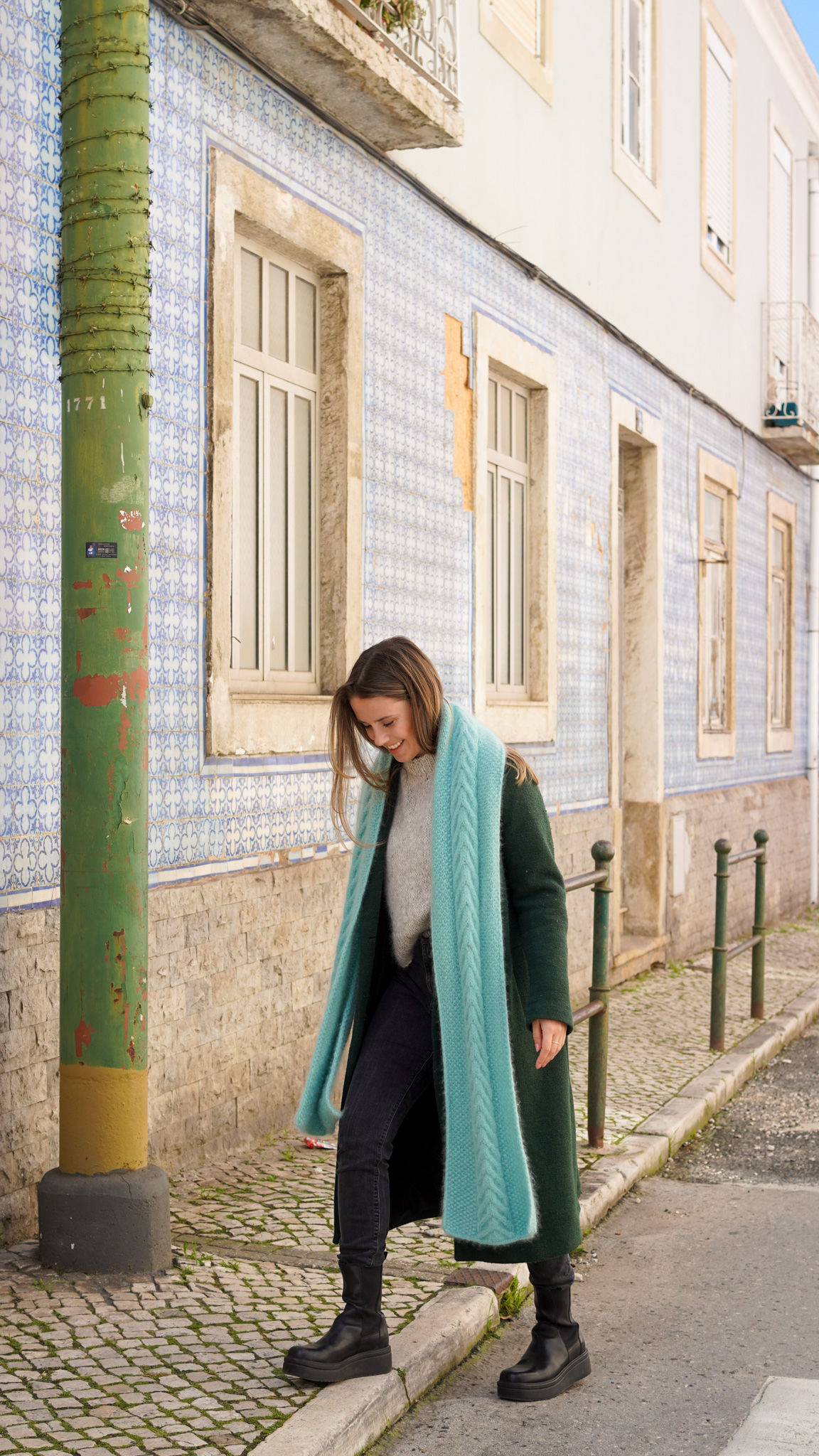 Les coloris du modèle ci-dessous sont le 950.0092 et 950.0072 en laine Cashmere Light de Lang Yarns. Un joli soleil couchant pour présenter la belle écharpe douce et moelleuse ou une virée en plein cœur de Lisbonne au Portugal.