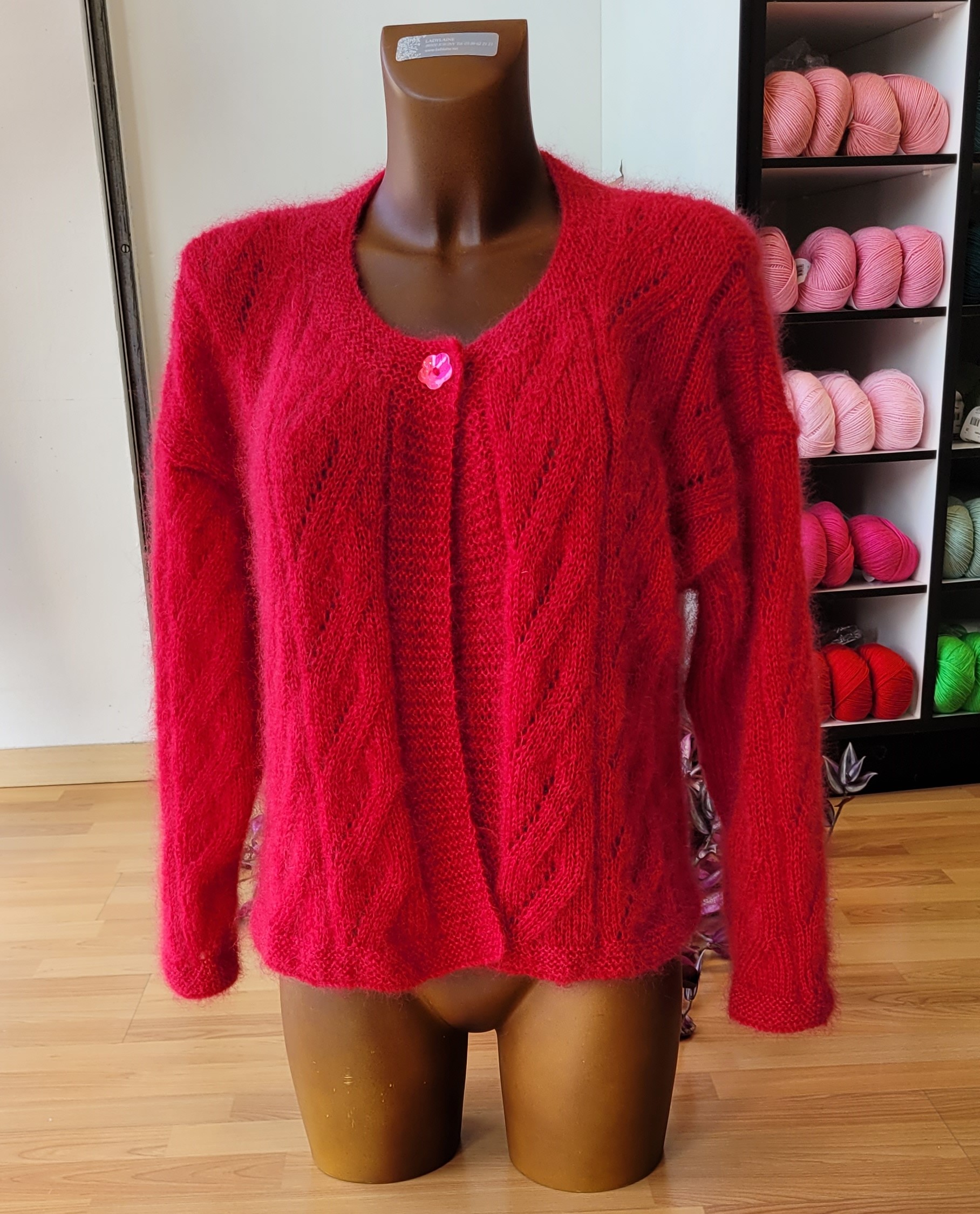 🥶 Avec ce froid qui saisit, quoi de mieux que de porter un doux gilet tricoté main en laine mohair et soie ? 💯 🥰 Une cliente, en voyant l’étole que j’ai tricoté en Mohair 21 de Lang Yarns 🧶 pour la boutique, m’a demandé de lui tricoter un gilet avec ce même point. Je me lance donc dans la création de ce gilet femme laine Mohair Luxe Lang Yarns dans le coloris rouge 698.0061 ❤️. Vous voulez savoir tous les secrets de ce modèle et le reproduire chez vous ? 🤫 On vous explique.