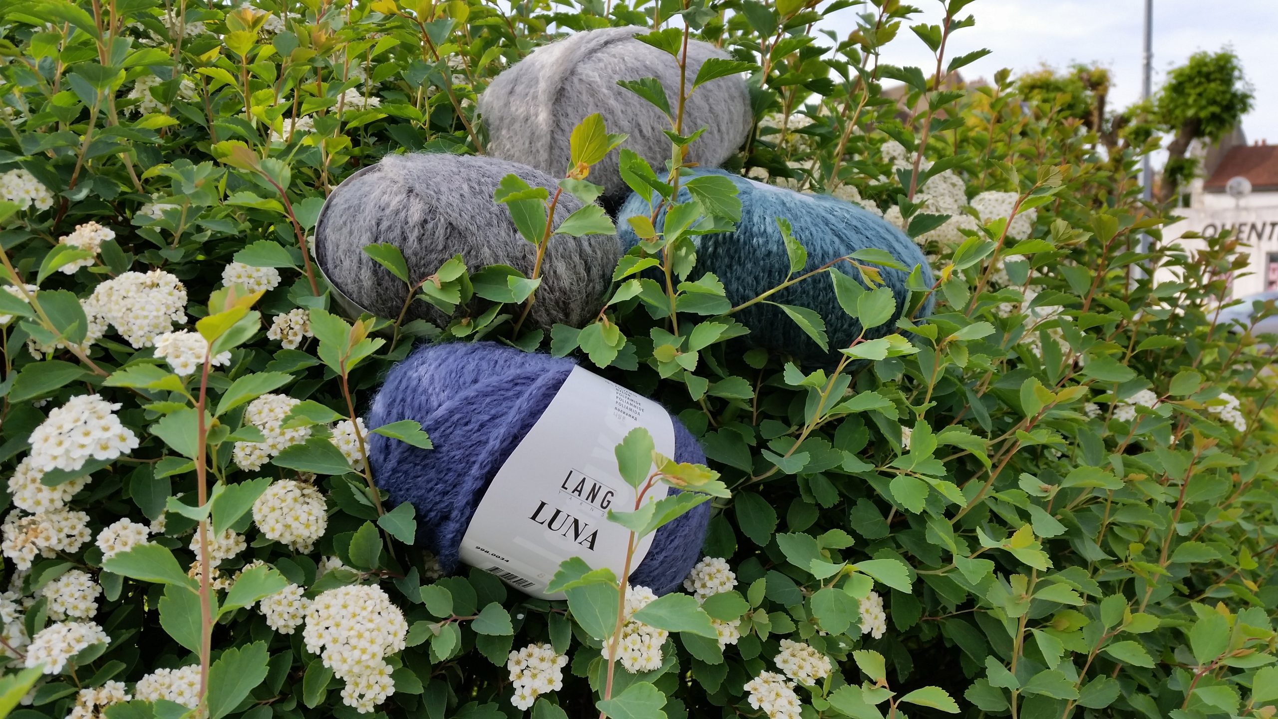Attention, la laine Luna n’existe plus. Vous pouvez prendre à la place la laine Malou Light de Lang Yarns (en fil double).