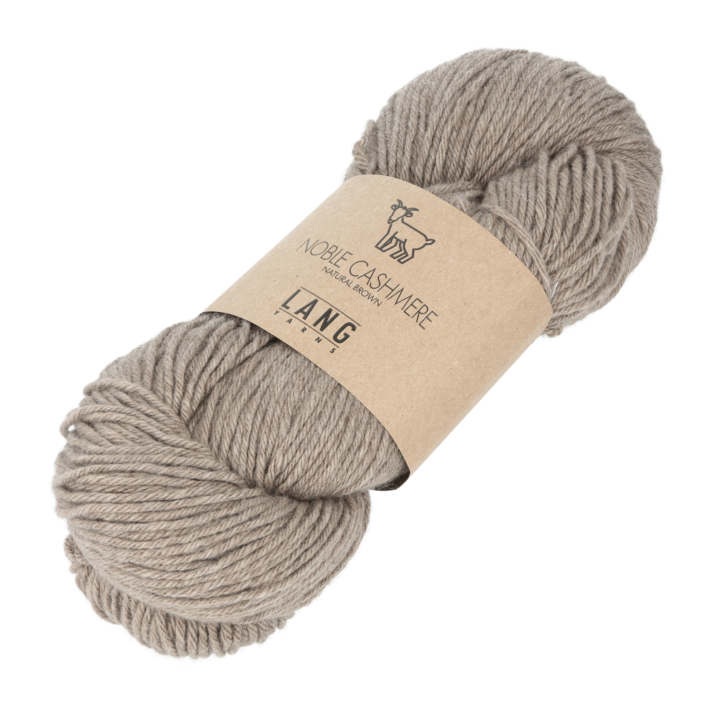 - Noble Cashmere: 100% poils de cachemire, pelote de 200 m pour 100 gr. Elle se tricote aux aiguilles n°4.5-5, disponible dans 3 teintes naturelles.(Laine n’étant plus commercialisée par Lang Yarns depuis septembre 2025.)