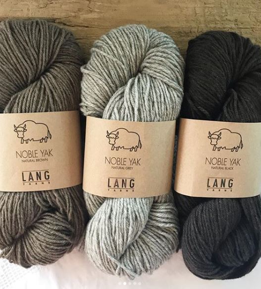 - Noble Yak: 100% poils de yack, pelote de 200 m pour 100 gr. Elle se tricote aux aiguilles n°4.5-5, disponible en 3 teintes naturelles. (Laine n’étant plus vendue par Lang Yarns depuis mars 2025.)