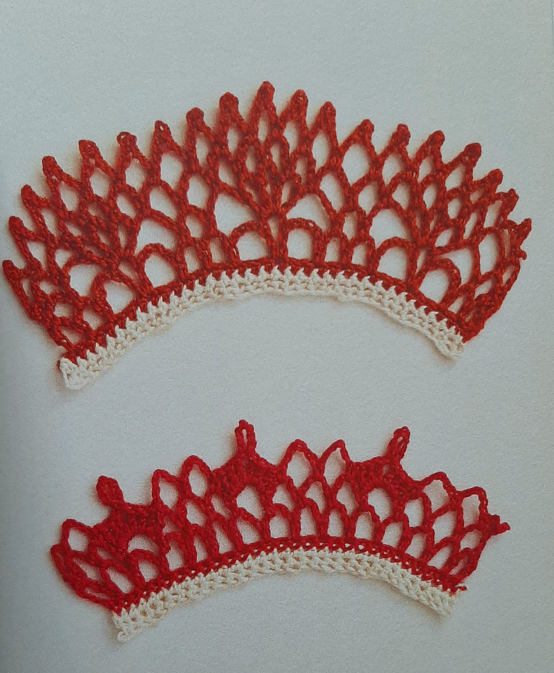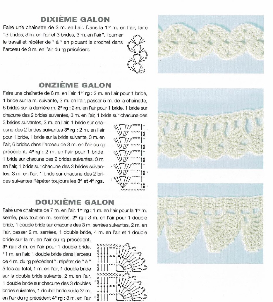 Et ci-dessous des galons, que l’on crochète indépendamment et que l’on vient coudre après sur l’ouvrage :