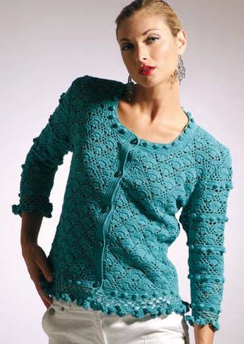 Voici 3 exemples de gilets tricotés Anny Blatt avec des bordures au crochet :