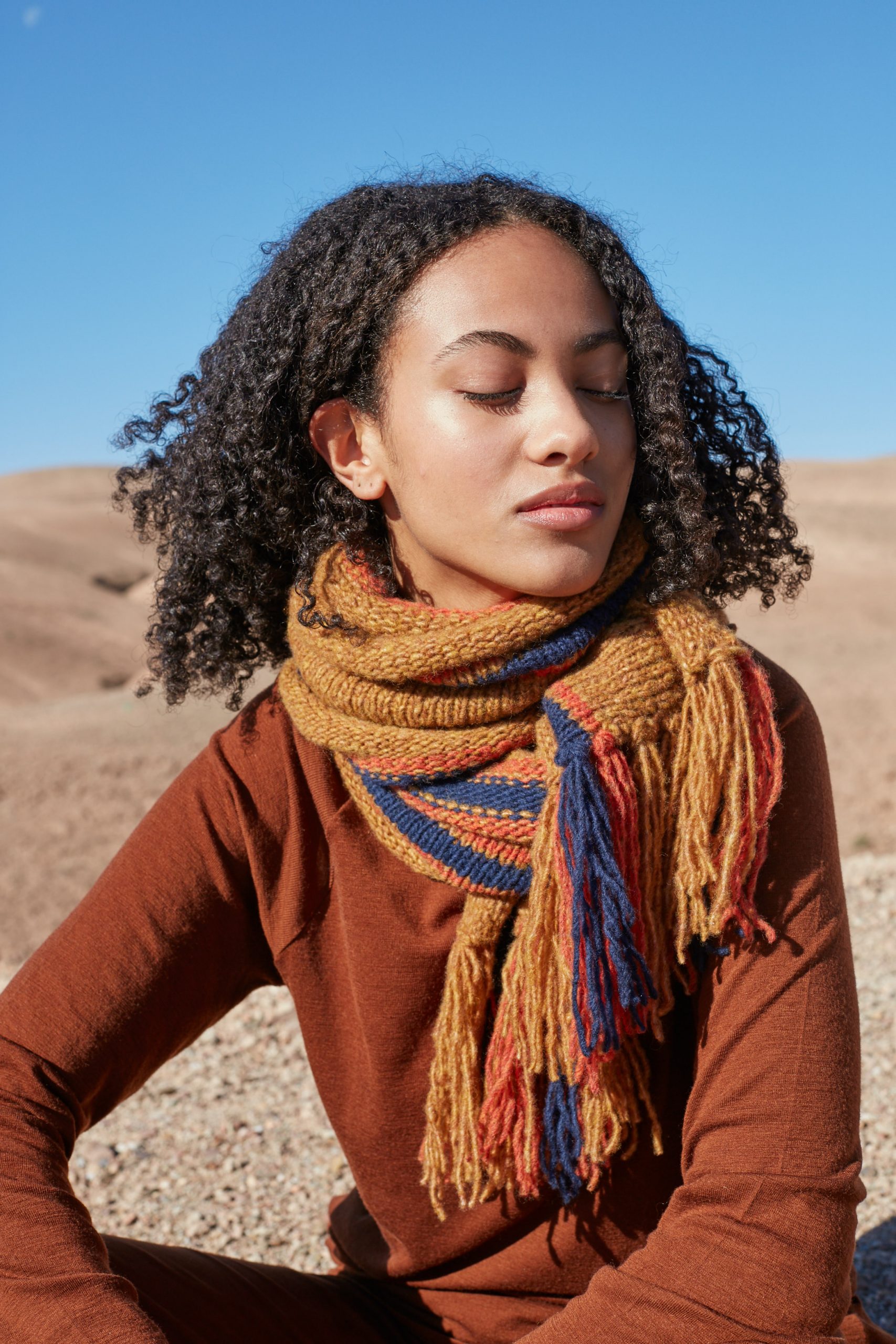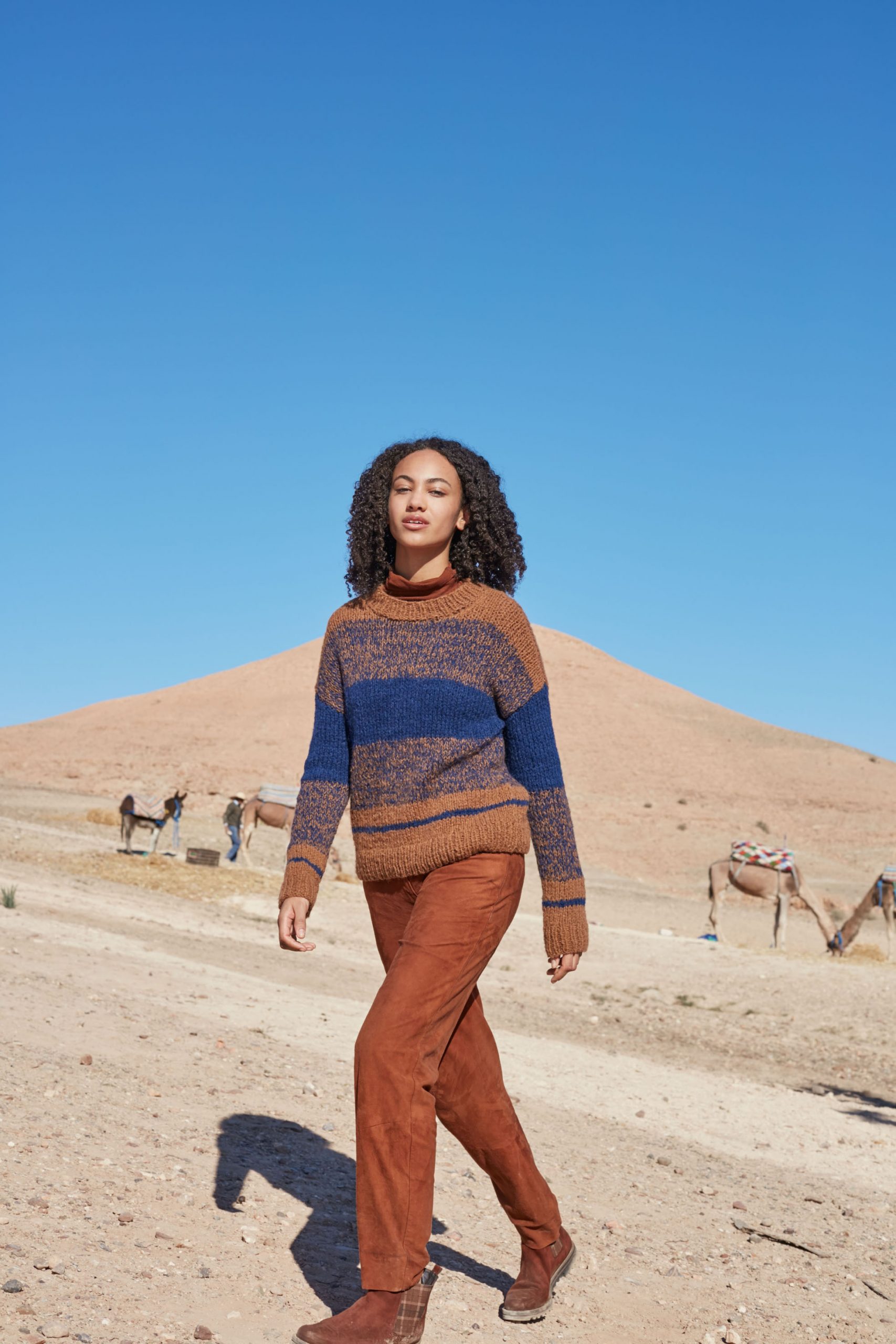 Les tons chauds et dorés sont à l’honneur cette saison: du jaune en passant par le coloris moutarde, le beige sable et l’orangé du Maroc… vous aurez envie de vous évader dans un pays chaud. Une source d’inspiration pour les designers de la marque Lang Yarns ainsi que Wooladdicts. Cette dernière a d’ailleurs pour l’occasion réalisée l’ensemble de son shooting photos du nouveau catalogue Automne-Hiver au Maroc. Dunes de sable et maisons typiques Marocaines sont au rendez-vous !