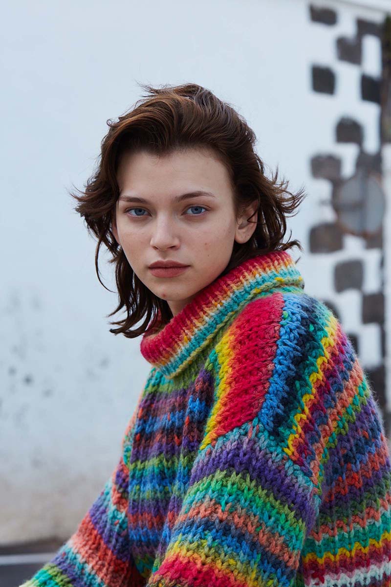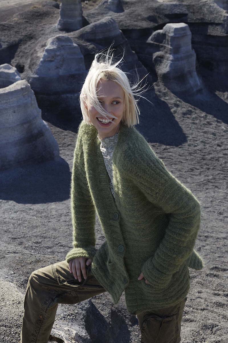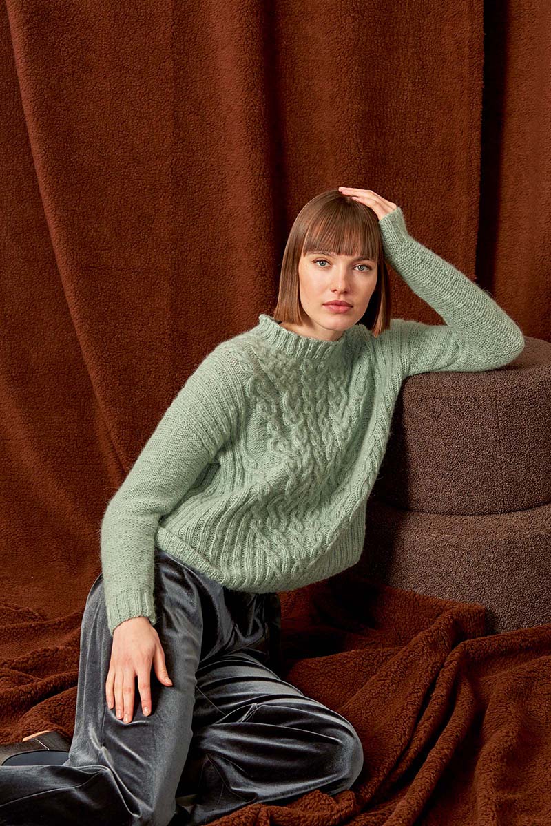 Vous trouverez ici des textures et torsades inspirées par l’abondance de la nature, qui jouent avec la lumière et qui sont complétées par des fils volumineux. Donnez à votre garde-robe hivernale un souffle d’élégance raffinée avec une combinaison