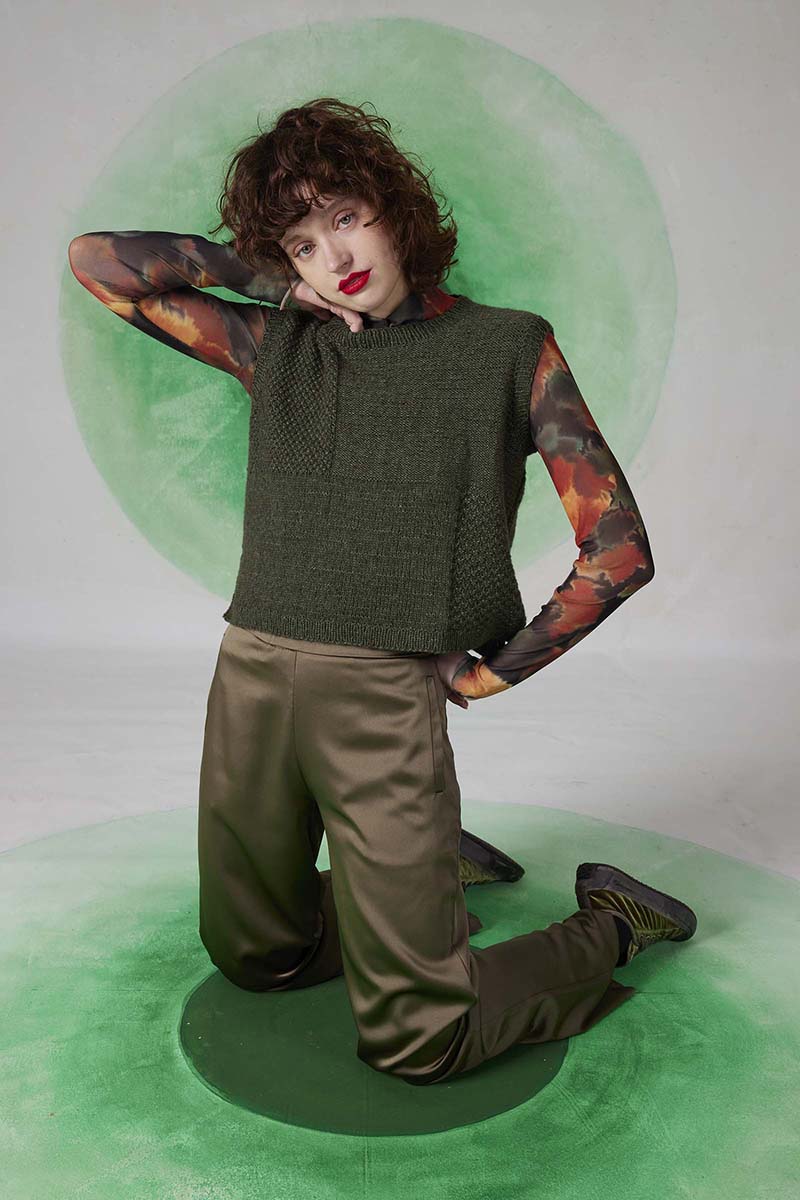 - Pull sans manches en laine Honor de Wooladdicts de Judith Jelena tricoté avec Addi Express Kingsize machine