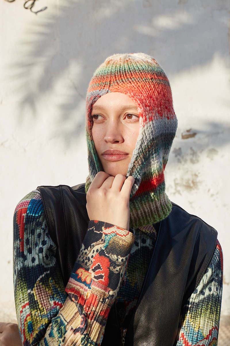 - My Jose Hood de Norgardknitters, balaclava tricoté en laine Carpe Diem de Lang Yarns