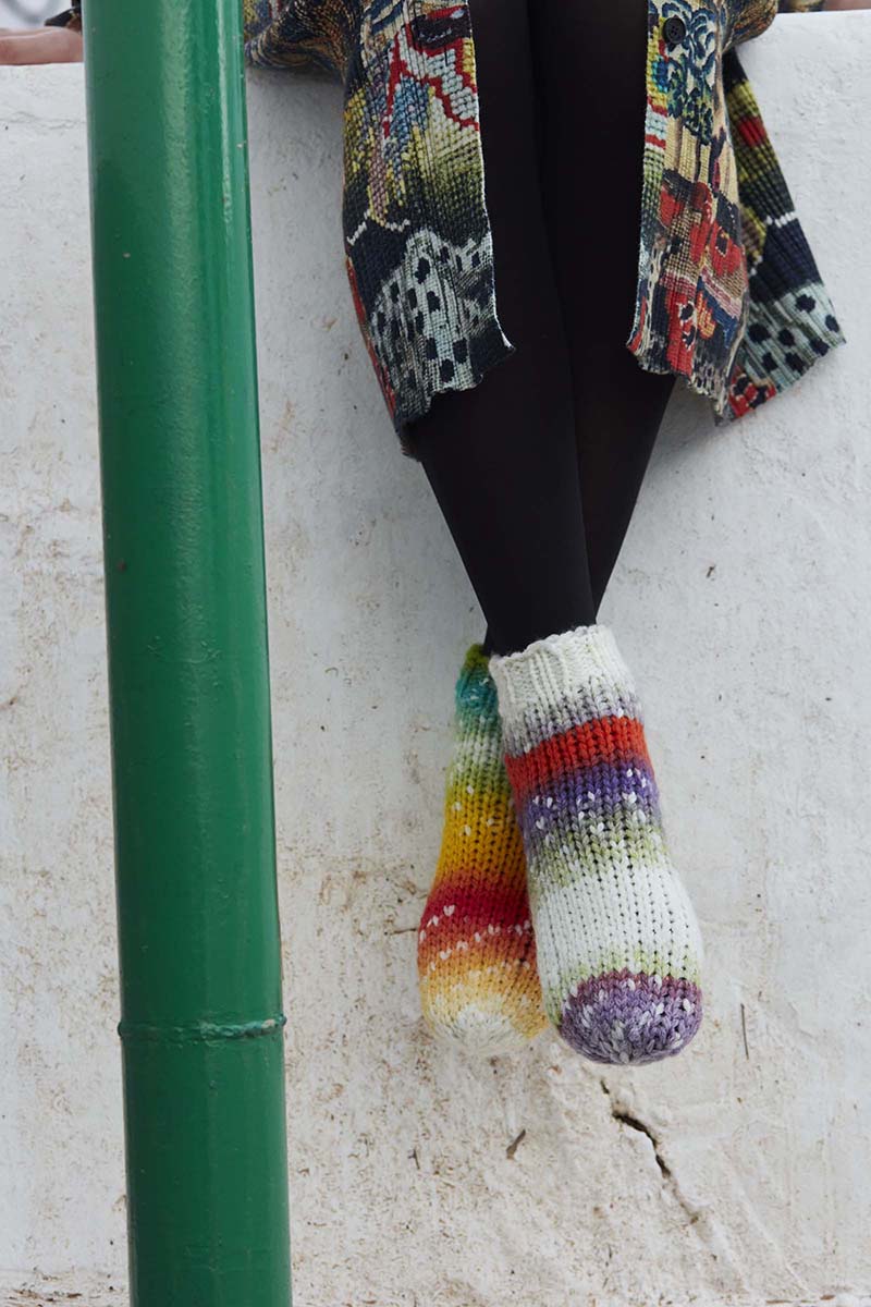 Voici quelques modèles de la collection arc-en-ciel, dont vous pourrez trouver les explications en français dans le catalogue Wooladdicts 13 :